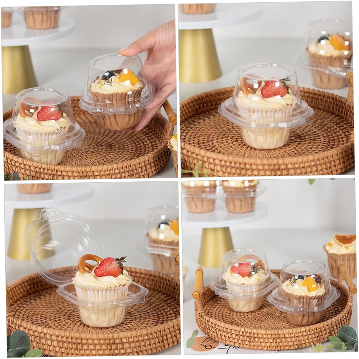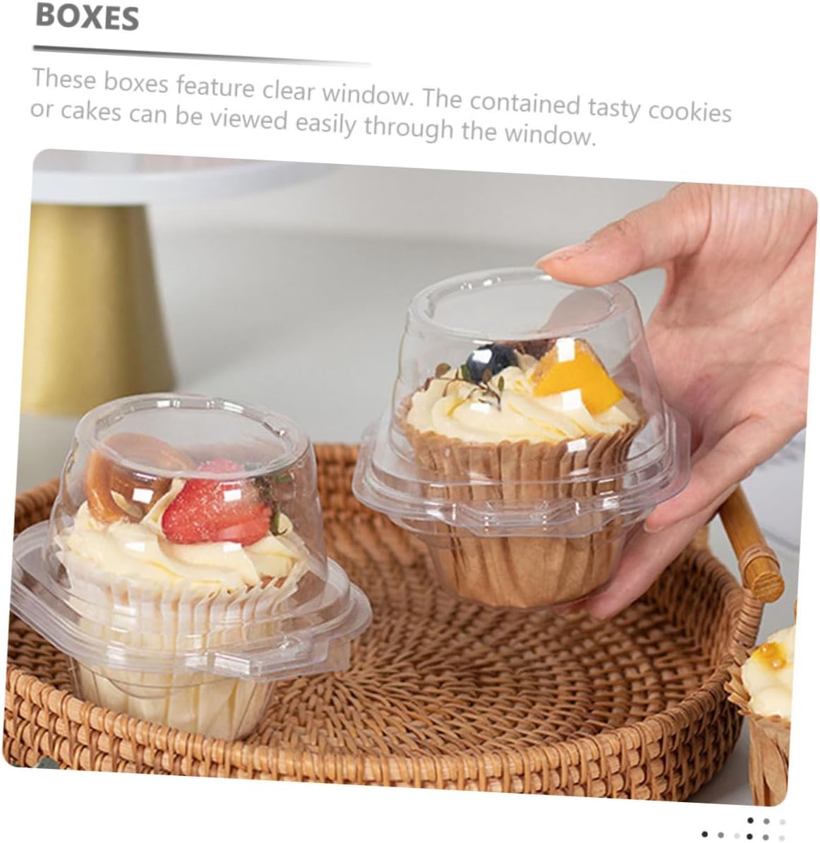 Package Include 100 x Storage Boxes Features -Material: PET Clear Dessert Box -Color: Transparent Dessert Boxes -Size: About 11.00X10.00X9.00cm/4.32X3.93X3.54in Plastic Package for Cupcake - These boxes feature clear appearance The contained tasty cookies or cakes can be viewed easily through the window Muffin Box. - Preparing a your family and friends, give them a Cake Wrapping Boxes. - Transparent box made of plastic material, means these boxes are resistant to light scratching and similar surface damage Transparent Packing Box. - Can be used for dessert such as egg tarts, cake, candy, , etc Cupcake Cake Packing Boxes. - Come with predefined so it is very easy to assemble They hold their shape and stay closed Cake Packing Box.Goods DescriptionFood Containers Good material for use, you can directly see desserts through the transparent covers , very convenient.Baking Supplies Do you want to find and trust worth boxes to hold your dessert cakes? These clear cake boxes will meet your needs, which are made of plastic material with good material