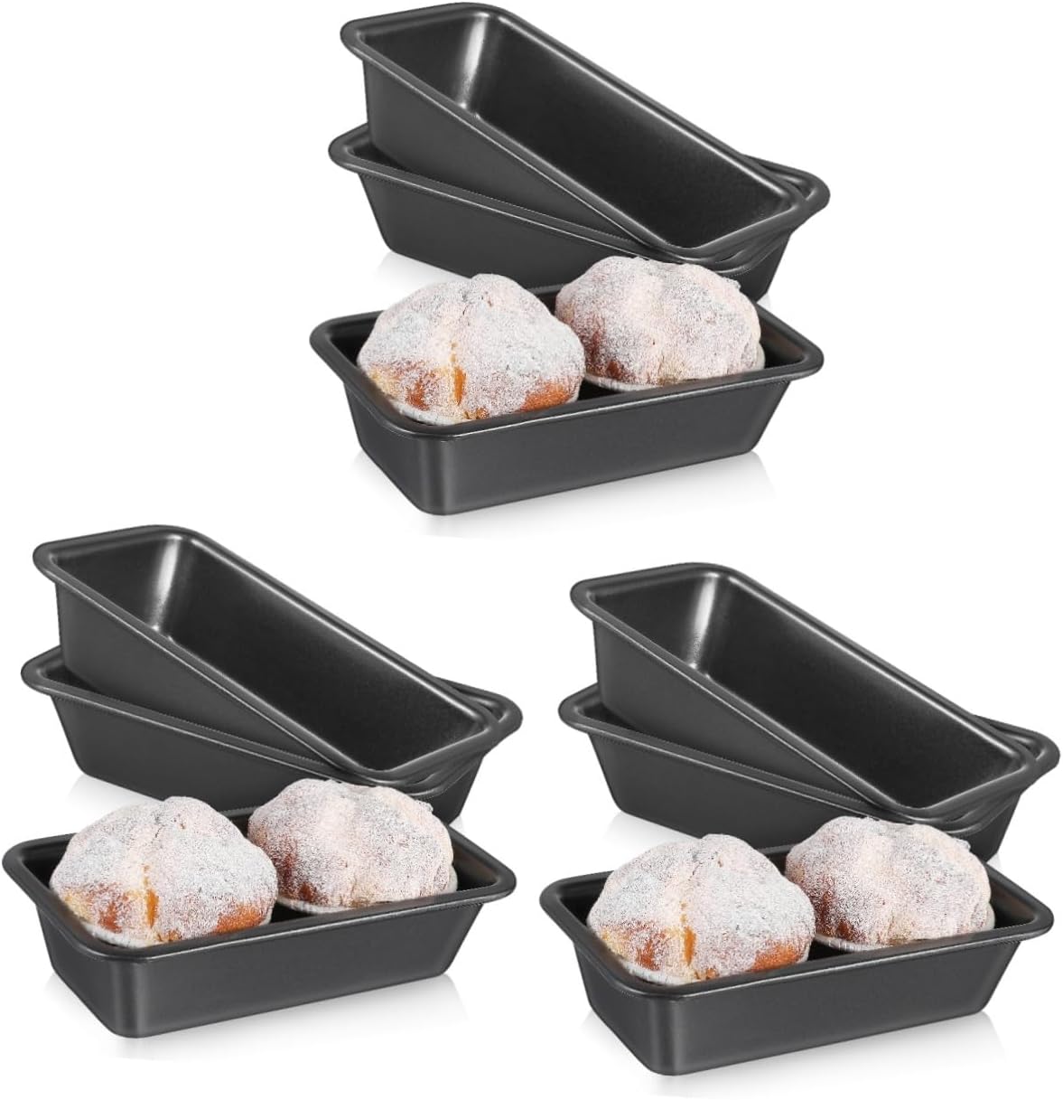 Package List 12 x baking pans Characteristics -Material:Carbon steel squared - Even heating: Thanks to its even heat distribution, this bread pan that your food is baked with proper temperatures black. - Easy to maintain: Designed with easy cleaning in mind, the loaf pan has no hard-to-reach corners, making cleaning up after cooking a breeze Loaf Pan Non Stick. - Quick release: Our kitchen baking pan features a nonstick coating that prevents food from sticking to the surface, making cooking and cleaning a breeze banneton. - Secure hold: The rolled edge design of our bread pan a secure grip, making it convenient to access loaf pans for baking. -Color:As Shown baguette -Size:15.50X8.60X4.00cm/6.09X3.38X1.57in standard - material: The use of carbon steel material in this bread baking pan enhanced reliability and longevity Oblong Cake Pan.Goods Descriptionloaf pan The nonstick coating quick and smooth release, while the rolled edges provide a secure grip.baking pan These pans are designed to provide a superior baking experience, with a carbon steel construction that even heat distribution and consistent results.Baking Pan Elevate your baking experience with our baking pans