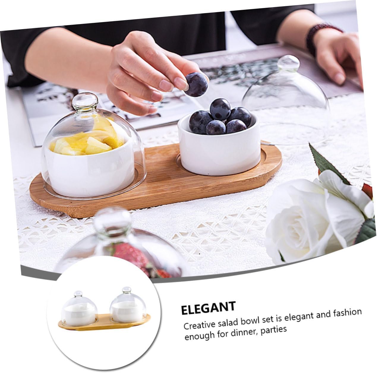 Package List 2 x bowls 2 x covers 1 Characteristics - Material: Wood + glass + ceramics fruit bowl. - Color: Assorted color dessert bowls. - Size: 25.00X12.00X8.50cm/9.82X4.72X3.34in serving bowls for entertaining. - It can be wonderfully used as a food serving bowl, which will increase your appetite greatly decorative bowl. - It is made of high-grade material, which can be used long time. small fruit bowl - Stylish ceramics bowl, it is perfect for restaurant, home, hotel and so on dessert bowl. - You can send it to your families and friends as a present, they will be happy dessert cup. - manufacture makes its surface smooth, and it is easy to clean with water. small bowls dessertGoods Descriptiondessert bowl display craftsmanship makes the surface smooth and easy to clean with water.dessert bowls It can be perfectly used as a dessert bowl, and it will greatly increase your appetite.serving bowl Fashionable ceramics bowl, it's home, restaurant, hotel and so on