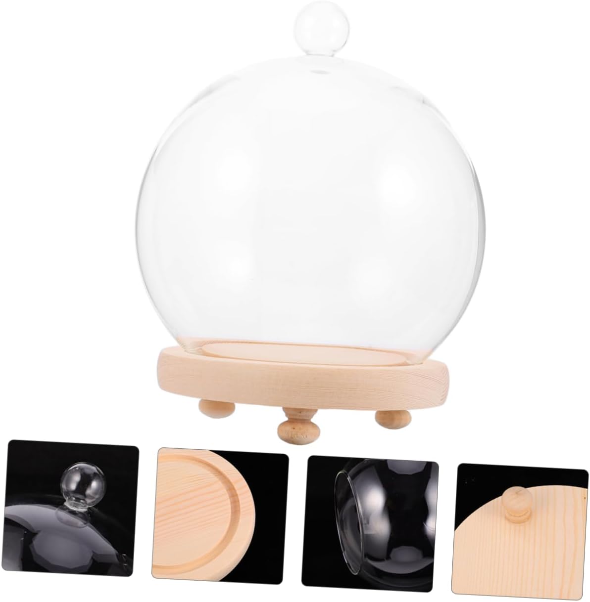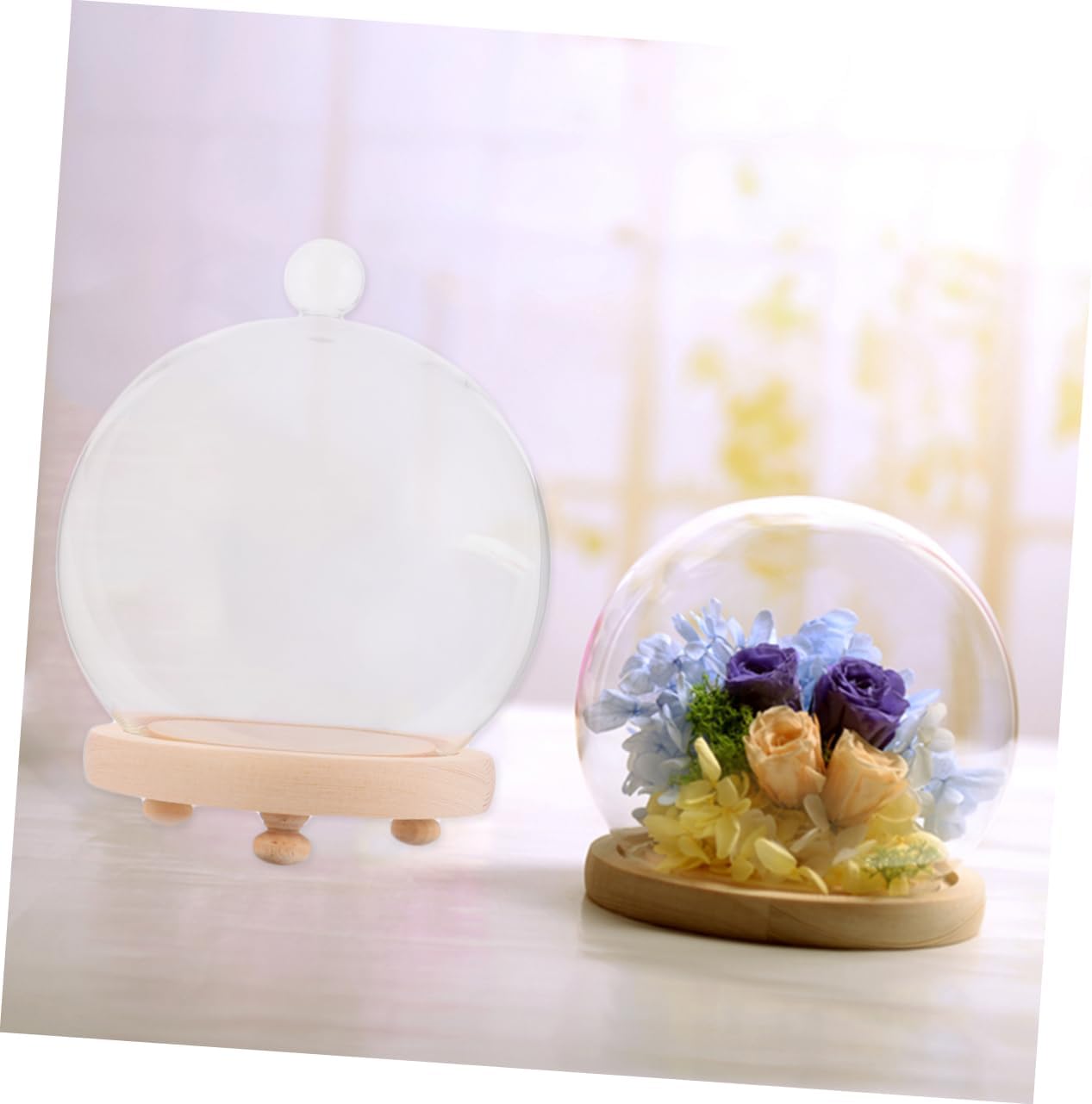 Package List 2 Sets x Glass Cover Features - Color: Assorted Color Cake Cover. - Size: 18.50 x 15.50 x 15.50 cm/ 7.27 x 6.09 x 6.09 inch Glass Bell Jar. - Material: Glass. - Features a removable clear glass dome with wooden base to display artificial plants, flowers Glass Cover. - With a glass cover and a wooden plinth, it is an elegant showcase your treasured collectibles, as well as being a beautiful piece in its own right Dustproof Cover. - This item is made of high borosilicate glass, with a wooden Cover. - It is good for as a to your family or lover. It Can preserve your for long time for display Immortal Cover. - This dome can create a lovely decoration arrangement, as a display center or Christmas decorations, creating Valentine's day or party, showcase display.Goods InformationFresh Cover Display your cherished keepsakes, valuables, figurines, or even beautiful artificial plants with a beautiful clear glass bell jar and wooden base.Glass Bell Jar Rounded glass cover, with delicate round handle, easily lifts off of the base so that you can access its contents