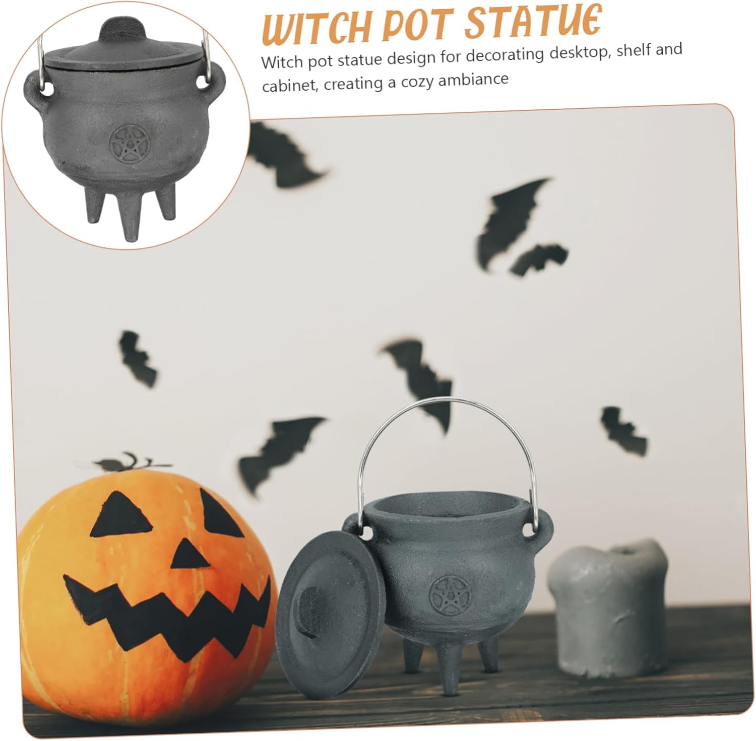 Package List 1 x Adornment Characteristics -Color:Grey Offering Witch Pot -Size: 10.00X7.50X7.50cm;/3.93X2.95X2.95in; Witch Pot Statue Craft -Material:Iron Witch Pot Adornment - Exquisite design with delicate craftsmanship makes it not only a handicraft but also a sacrifice prop Metal Witch Pot. - Unique design makes it very creative and decorative to display on your table Witch Pot. - Suitable for Halloween party and sacrifice to create festive atmosphere for you Sacrifice Tool. - Witch pot statue design for decorating desktop, shelf and cabinet, creating a cozy ambiance Witch Pot Model. - It can be used for decorating your home, office, hotel, restaurant, tearoom, etc. Decorative Witch Pots.Goods DescriptionOffering Witch Pot Wide range of uses, can be used to decorate tabletop.Religious Adornment want some creative and chic decors? If you are, you can try our product.Witch Pot Statue Craft This is a iron adornment with creative witch pot shape design and workmanship, exquisite and fashionable, decorative and unique