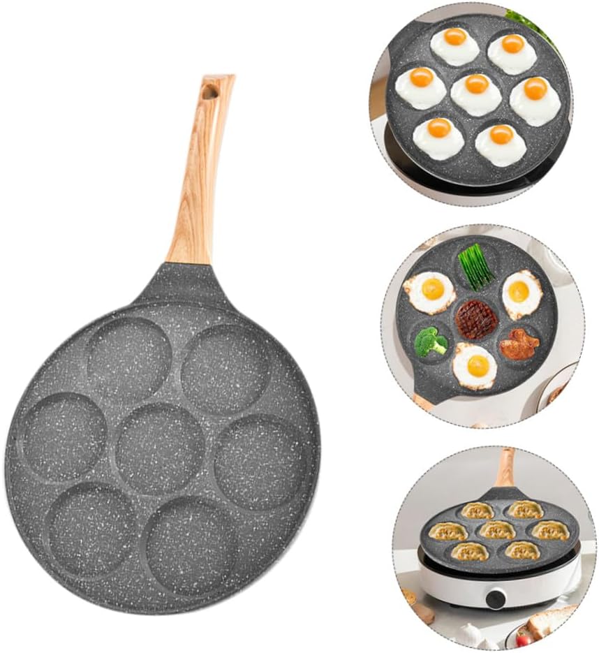 Package List 1 x Seven-hole Frying Pan Characteristics -Size: 46.00X26.50X2.00cm/ 18.08X10.41X0.79inch Seven-hole Pan -Material: Medical Stone and Bakelite Multi-function Pan -Color: Grey Cooking Utensil -Fine workmanship and beautiful appearance its popularity Kitchen Supply. -Suitable for cooking in homes, restaurants, outdoors and other places Household Non-stick Pan. -It is suitable as a your friends who like to cook, they will be happy Non-stick Pan. -Using craftsmanship, it is more convenient to clean, save time, and make you fall in love with cooking Home Cooking Supply. -The long bakelite handle design is and convenient to use Cooking Pan.Goods Descriptionfried egg cooker Wear-resistant bottom design of the pan can heat evenly and save effort.Versatile Frying Pan This is a frying pan, which is made of material, and you can rest assured to use.Outdoor Cookware With creative design, it can keep food from rolling and sliding.muffin frying pan The non-stick pan is convenient to use and clean