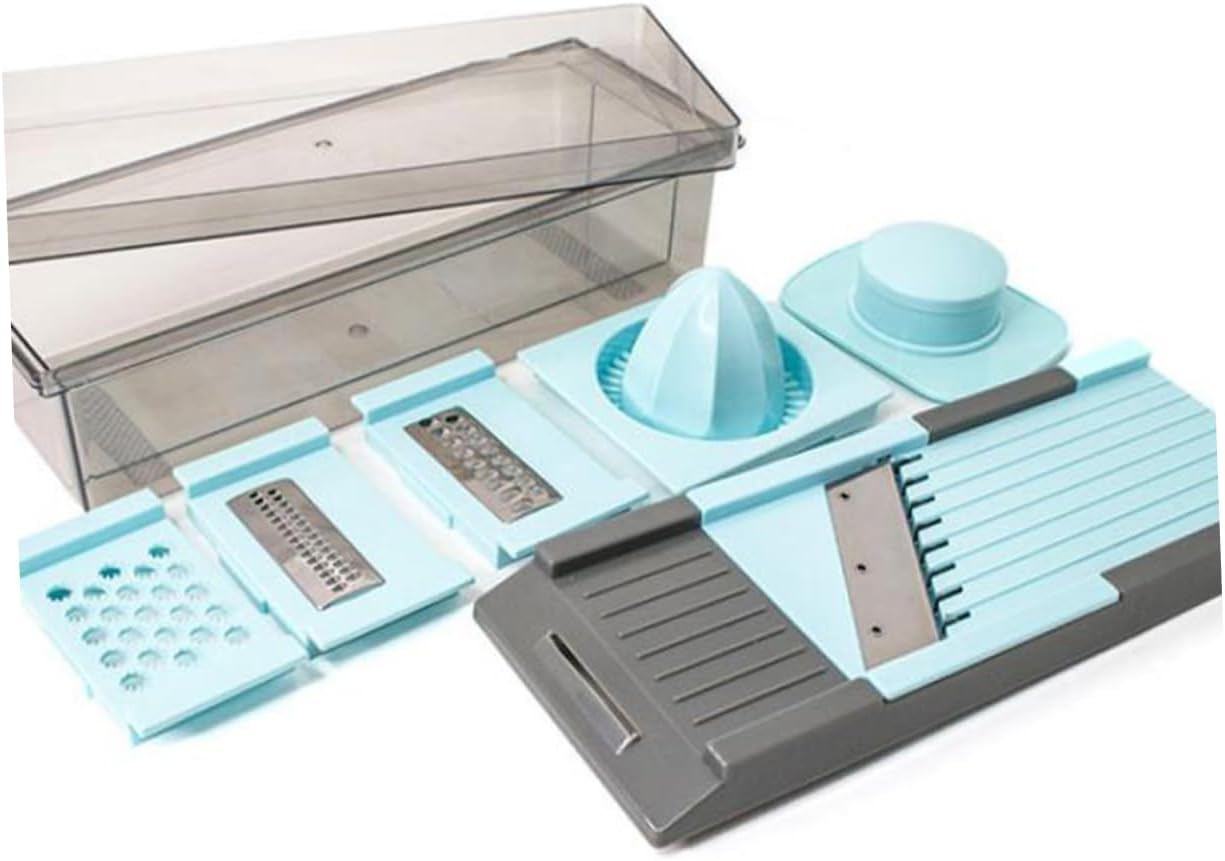 Package Include 1 x vegetable grater Features - Color: Sky blue fruit slicers. - Material: ABS, Stainless steel. - Size: About 30 x 11.5 x 8.5cm/11.811024x4.527559x3.346457 inches. - Made of material for lasting use slicers. - Makes dishes look better and at the same time save time vegetable grater. - Small enough to store in your drawer juicer squeezer. - for grating or slicing ginger, garlic, carrot, etc Can be used as a juicer squeezer, too slicers for vegetables. - Also suits for , cucumbers, squash and more vegetable slicers. - Comfortable to hold, makes cutting or slicing efficient and effortless.Goods Informationslicers for vegetables These blades can cut through all kinds of veggies, grating cheese, slicing potato and cutting fruits.slicers Can be used as a juicer squeezer, too.juicer squeezer Quick and effortless to cut food prep time in half, very easy to use.vegetable slicers This hand-held slicer offers all the functionality of multiple appliances
