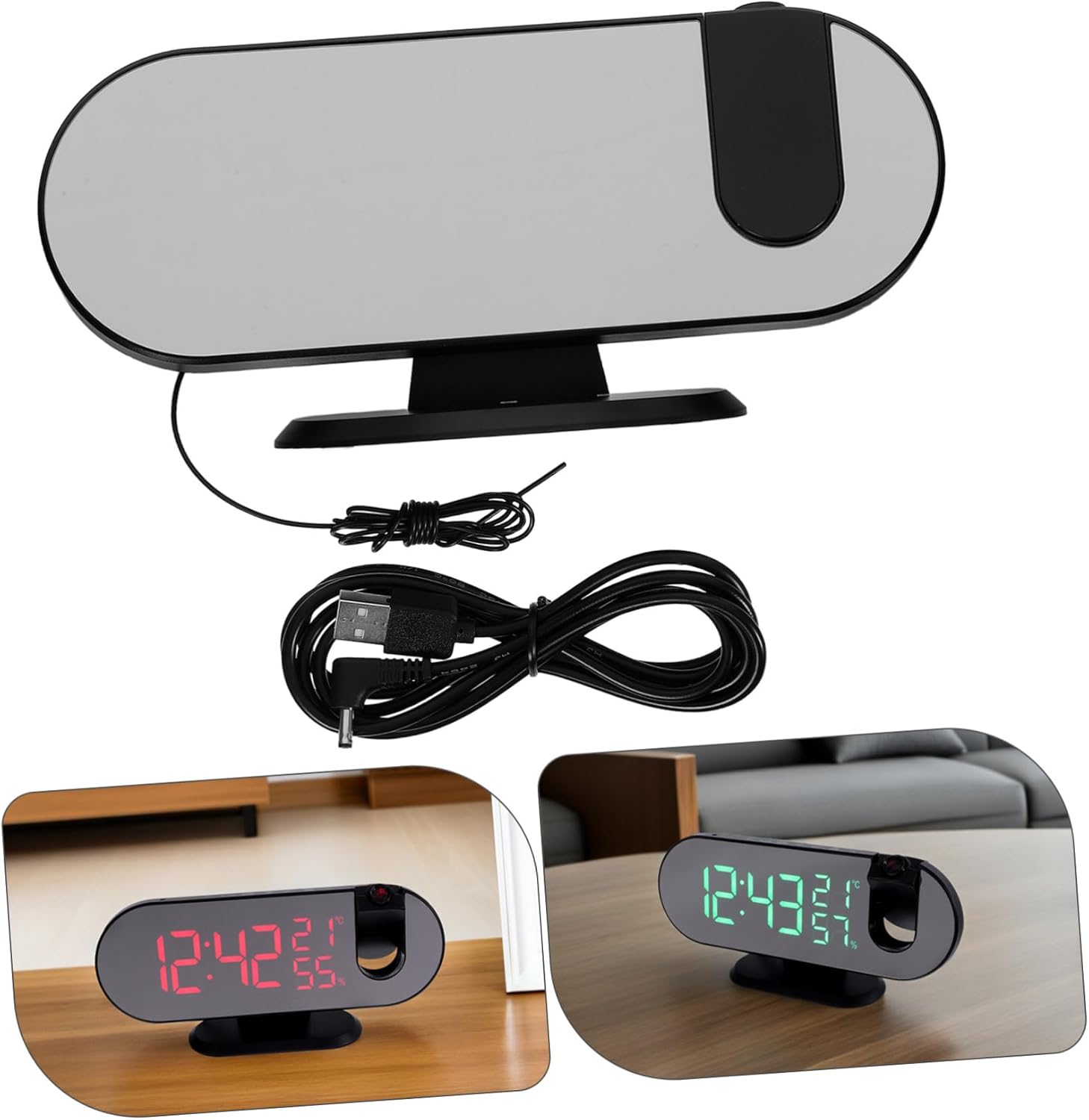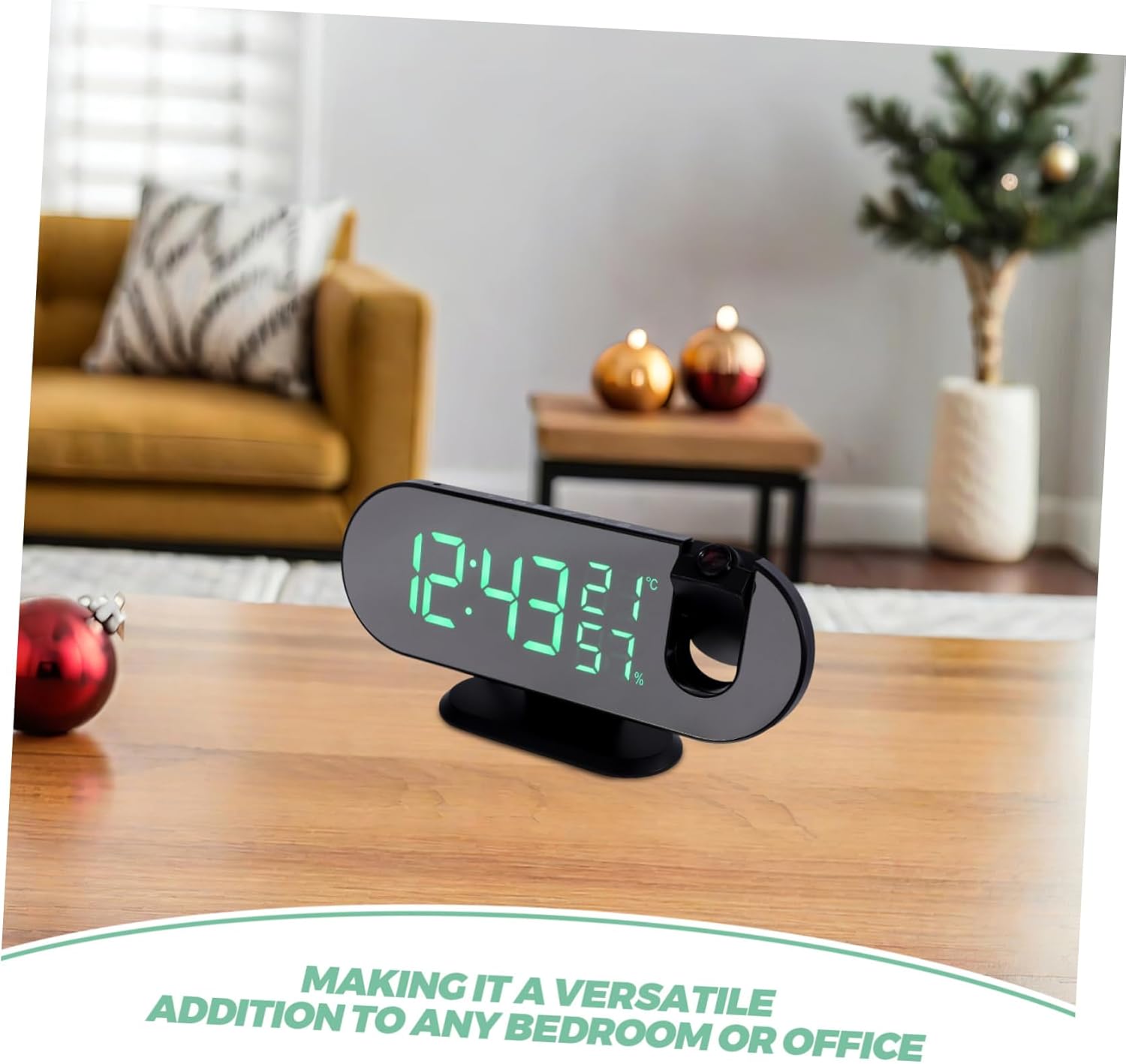 Package List 1 x projector clock Features -Adaptive light sensor: automatically adjusts brightness according to ambient light, ensuring it is not too bright at night and clearly visible during the day, creating a comfortable sleep and experience plug in alarm clock. -Clear LED display: the large LED color screen displays time, date, and day of the week clearly, even from a distance, solving the problem of in the morning USB power clock. -Size:20.80X7.40X5.20cm/8.17X2.91X2.04in alarm clock with projector -Material:LED ABS Electronics projector clocks for the ceiling -Usb charging capability: the USB output port allows for convenient charging of phones and other devices, making it a multifunctional bedside device that simplifies bedroom layout and enhances living convenience small electric clock. -Color:Black office electronics products -Snooze functionality: the snooze function is designed for those who find it difficult to wake up in the morning, providing multiple reminders until fully , making mornings less rushed projector clock.Goods Informationalarm clock projector dimming screen ensures comfortable viewing in any lighting condition, while the projection function allows you to see the time from anywhere in the room.projector clock The clock also includes a for those who few extra minutes of rest.LED clock digital Designed with convenience in mind, this LED alarm clock is equipped with a variety of user-friendly features