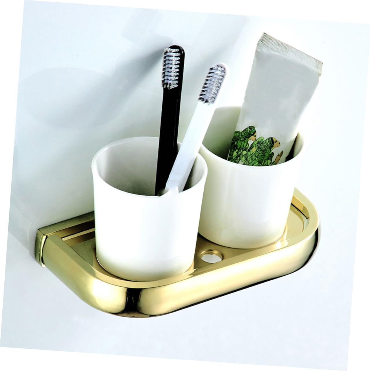 Package Include 1 x Toothbrush Cup Holder Characteristics - Warm Tip: Dear buyer, due to lighting effect, monitor's brightness, manual measurement, etc., there could be some slight differences in the color and size between the photo and the actual item. Sincerely hope that you can understand! Thank you! toothbrush cup holder - Color: Golden wall mounted storage shelf. - Size: 195 x 10 x 11 cm double mouth cup holder. - Material: Brass. - Can help you easily hold your toothbrush cup, double mouth cup and other things bathroom accessories. - install for bathroom, washroom and kitchen bathroom storage rack. - Made of brass material, waterproof and rustproof. - Electroplating with golden color, shiny and fashion. - Wall mounted design, much room space saving.Goods Descriptionbathroom storage rack This toothbrush cup holder can help you easily hold your toothbrush cup, double mouth cup and other things.wall mounted storage shelf Simple and fashion toothbrush cup holder, , and environmental.toothbrush cup holder for bathroom, washroom and kitchen.double mouth cup holder With wall mounted design, much room space saving