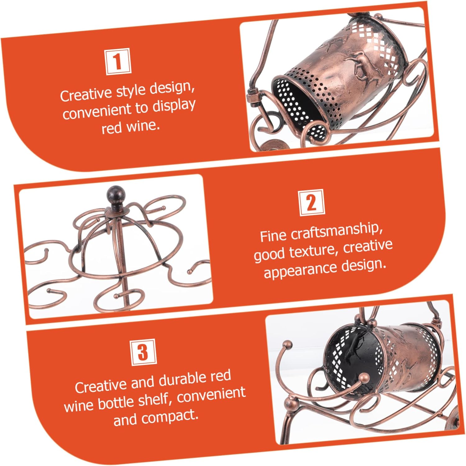 Package Include 1 x Storage Rack Features - Color: Light Brown bottle rack. - Material: Iron decorative holder. - Size: 39.00X31.00X15.00cm/15.33X12.18X5.89in bottle storage rack. - The rack can also be used as a beautiful on any special occasions Bottle Storage Holder. - It can be used as a wine rack crafts to decorate your life because of its creative shape Decorative Bottle Shelf. - Horse-drawn carriage wine rack can display your wine perfectly without taking up space bottle racks. - The stylish and chic design can be placed in any home, kitchen or bar table, wine fans bottle display rack. - Higher strength, no fading and environmental protection.Every unique detail can show personality and decorative rack.Goods Descriptionbottle rack Show your wines in a stylish style! This is wine rack is the centerpiece of your wine cellar or dining table.decorative holder This stylish wine rack has a simple design and is used to store wine.Decorative Bottle Shelf The iron material is not easy to damage and is very practical.bottle display is very useful and practical