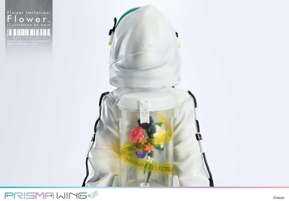 From Prime 1 Studio. Step into a dystopian future, where emotions are shrouded by masks and hoods, and flowers bloom in botanic capsules. This extraordinary figure brings to life the original artwork of the popular illustrator, neco. The gaze that emerges between her visor and mask is sheik and stylish, replicating neco's artistry in high-quality detail. Her ash-gray hair color complements her luminous skin, and no effort was spared in the post-futuristic color scheme. Furthermore, an unmasked face part that reveals her natural expression, capturing the nuances of her emotions is also included. The costume is a masterpiece of intricate detailing. From the waterproof fabric to the cords and belts running throughout, every element has been crafted with artistic precision. The ankle boots, designed with flair, evoke a sense of purpose, each detail having its own unique story to tell. The organic form and serene color palette of the namesake flowers adorning her back have been carefully crafted, creating an ambiance that seamlessly blends with the inorganic capsule, stimulating your imagination of a future that may not be so distant. Additionally, our Prime 1 Studio online store exclusive bonus version includes an acrylic block featuring neco's original artwork. This item is a must-have, allowing you to immerse yourself directly in the colors, tones, and designs birthed by neco. Perched on a striking monument labeled 11B, this mysterious girl and her blooming flowers create a stunningly imaginative piece, brimming with neco's delicate touch. And now it can grace your collection as a scale figure! Specifications: Flower-themed base Two (2) Swappable face parts (Masked and Unmasked) Acrylic block featuring artwork by neco [BONUS ITEM]