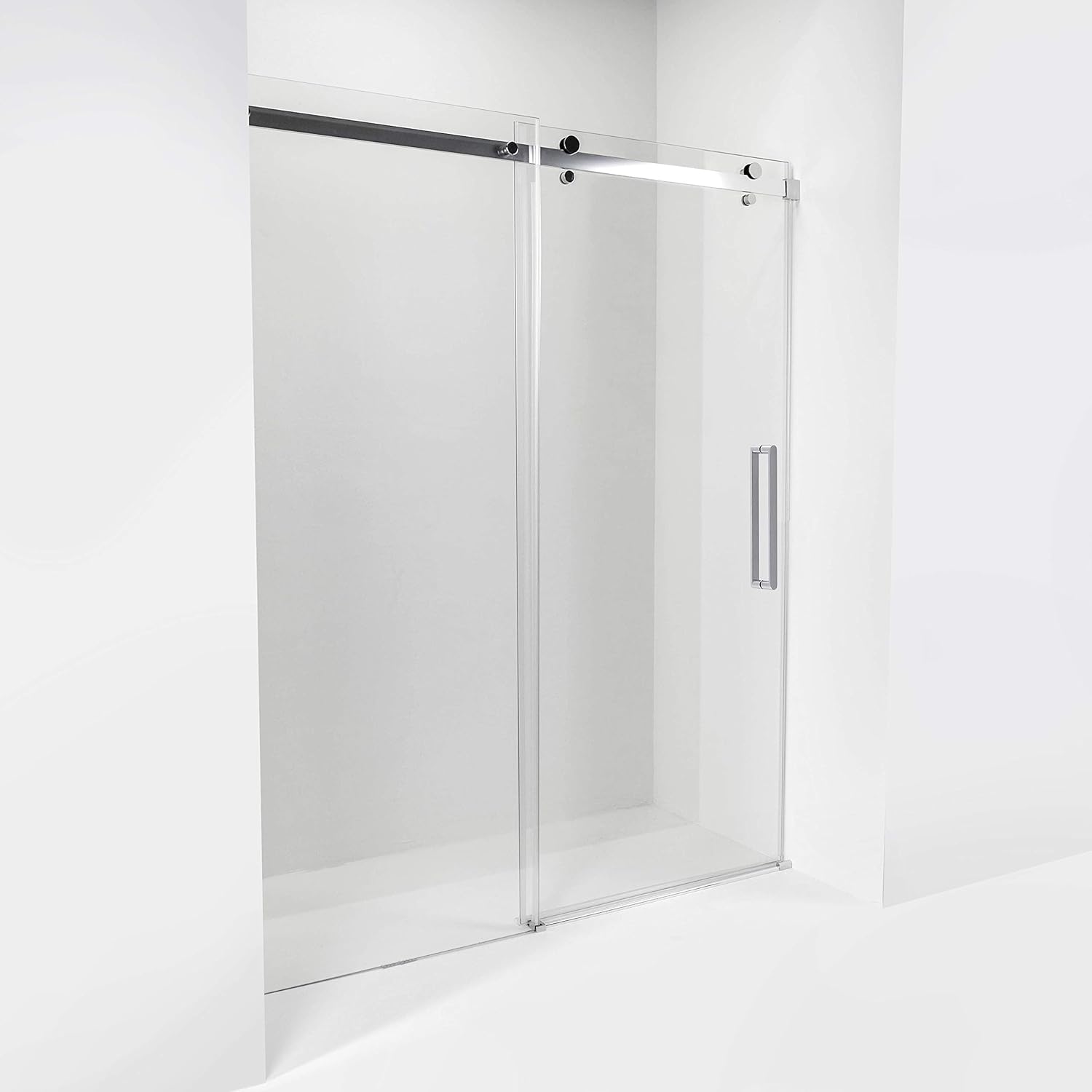Renovate your bathroom with style and accentuate your decor with the AmLuxx tempered glass sliding door. Tall and frameless, this 2-panel shower door has a modern and silent roller system making it easy to open. The reversible door for left or right opening installation is a great feature for ease of installation.