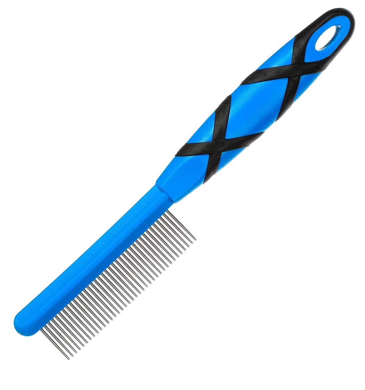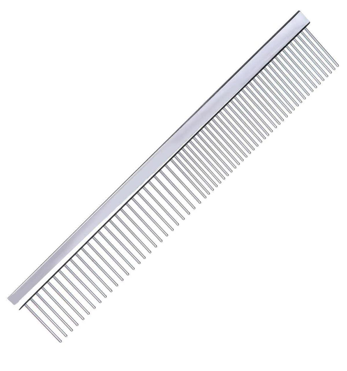 Dog Grooming Tools Professional Double Row Comb Comb features two rows of tightly space teeth to double the effectiveness when combing for dirt. Tooth Comb 24 or 37 Classic tooth comb with a choice of 24 or 37 teeth with and easy grip handle. Helps fluff up the coat, prevents matts, and tangles and can be used for general grooming on most coat types. Short 0.8 inch pins. Wooden Poodle Comb XL Pins Designed for thick, long, demanding poodle coats, this comb features rounded stainless steel teeth with an amazing length of 2.5 inch long enough to suit all poodle coats, top knots, and all poodle cuts. It can be used for general grooming, in the show ring, or in the salon before scissoring or clipping to help lift and create fluff and body, while removing small tangles. Chrome Fine Coarse Professional stainless steel comb, widely used by groomer. Comb 7 inch with 1.2 inch long teeth. Rotating Tooth Comb Unique comb features spring controlled rounded teeth which retract and rotate with the contours of the body and the pressure applied, eliminating brush burn and help aid control. Teeth rotate 360 degrees to help reduce hair pull and tugging and glide through troublesome coats. Available in 6 different sizes or a Full Set of All 6 Tools!