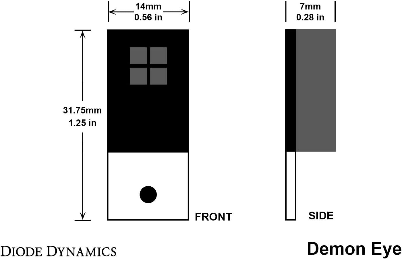 Demon Eyes are small, high-power LEDs that illuminate the projector lens inside your headlight, for a unique, custom look. With multicolor RGBW LEDs, they can be paired with our Bluetooth Controller for full control from an app on your phone! After years of experience manufacturing demon eyes at our facility in USA, we are pleased to announce the new Pro Series Demon Eye. Brighter is better. Pro Series Demon Eyes were engineered from the ground up to be the brightest and most reliable units on the market. Using a total of 18 watts of LED chips, full aluminum substrate with heatsinking, wire-to-board connectors, and constant-current external drivers with shutoff, these Demon Eyes will shine with enough output to be visible in daylight, while staying cool and reliable in operation. Ask any professional installer - Diode Dynamics demon eyes are the brightest ones made. Installation required. Headlamps must be opened up in order to install, so professional installation is recommended. Once you're in, you can use the included H1 brackets to mount to any H1-style projector. If you're working with something else, you'll need to custom-mount in any reasonable location, to shine light into the projector area. Then, wire up using an RGBW Controller (not included) and connect the shutoff wire to your low beams, so the demon eyes will shut off when your headlamps are turned on, keeping the demon eyes cool. Full RGBW. Full multicolor, with no sacrifice. Unlike other RGB Demon Eyes on the market that produce a mixed white color, our Pro Series Demon Eyes are RGBW, with independent White LEDs. After you have fun with colors, just select True White for a crisp, clean white output for everyday use. App Control. With our optional Bluetooth controller, you can choose any color under the sun, including True White. There's preset patterns too, including strobe, fade, and more. But it's the extras that really make this controller special. Simple features like Preset Colors make it easy to use, and fun features like Camera Match and Music Sync make it fun to show off! Don't see a pattern you like? Just program your own, and save it for later! This controller is the most fully-featured in terms of control and features on the market. Experience. After over a decade in business, Diode Dynamics is the most trusted name in automotive LED lighting. Unlike every other LED distributor, we manufacture and engineer products ourselves in the United States, for high quality and fast time-to-market of the newest and brightest LED technologies. We pride ourselves in offering only quality LED products, that will exceed your expectations. Features: 18 watts of LEDs for full multicolor and true white illumination Full aluminum construction, with added heatsinking Fully waterproof and shockproof constant-current drivers Small size for easy custom installations Designed and manufactured in the USA What's Included In the Box: Two (2) RGBW Demon Eyes with sturdy JST connectors Two (2) constant current RGBW drivers, fully waterproof Two (2) brackets for installation in H1 projectors Wiring instructions RGBW Controller is required, but not included Quantity: Two (2) : 3 year Return Policy: 30-day Return with no restocking fee 100 percent Satisfaction Specifications 18 watts of LEDs, RGBW, for full multicolor and true white illumination Full aluminum construction, with added heatsinking Wire-to-board connectors for easy installation and reliability Fully waterproof and shockproof constant-current drivers Shutoff wire to deactivate LEDs when headlamps are turned on Use included H1 brackets, or custom-mount anywhere you wish Small size for easy custom installations Designed, tested and manufactured in the USA An RGBW Controller is required to use this product. Beam Angle: Omnidirectional (270 degrees) Operating Voltage: 9-16V Operating Temperature: -40C to 85C (-40F to 185F) LED Emitter: High-Power Chip Scale Package (CSP) Connector(s): JST 5-pin Input (+GRBW) Driver Features: External, Waterproof, Constant Current Driver Dimensions: 2. 5 Inch x 1. 38 Inch x 0. 88 Inch Materials: Aluminum PCB, Aluminum Heatsink Cooling: Passive, heatsink Compliance Ratings: SAE J575 Durability Test Weight (lb): 0. 7000
