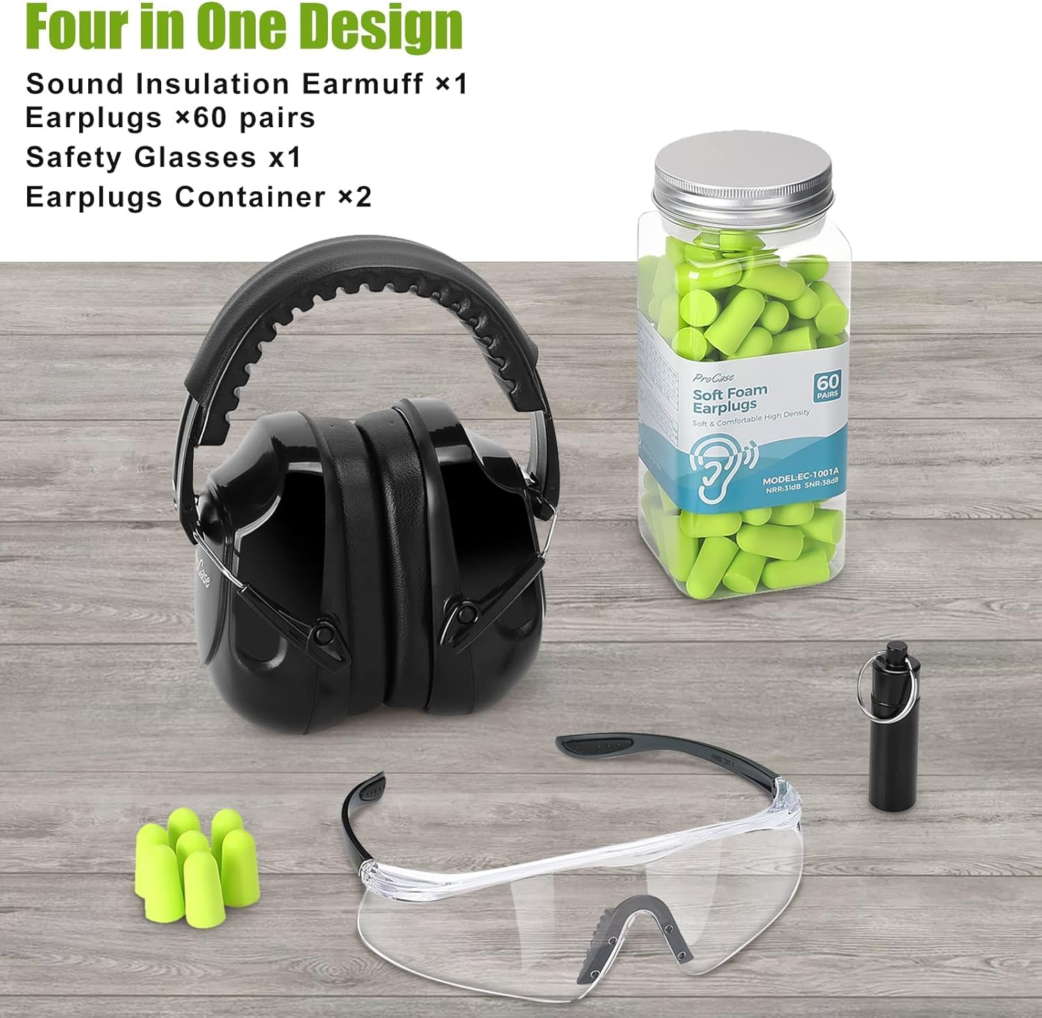 This pack contains a Noise Reduction Safety Ear Muffs and a 4-in-1 set Shooting Range Earmuffs