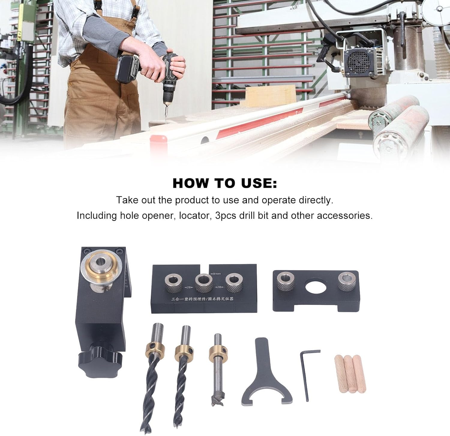 Item Type: Dowel JigMaterial: Aluminum Alloy, Poplar WoodClamping Range: Approx. 0 ~ 52mm / 0 ~ 2.05inApplicable Plate Thickness: Approx. 10 ~ 25mm / 0.39 ~ 0.98inConnecting Rod Length: Approx. 20 ~ 32mm / 0.79 ~ 1.26inProduct Use: For woodworking positioning and punching. Package List:2 x Dowel Jig1 x Positioning Fixture3 x Drill Bit1 x Wrench1 x Hex Wrench3 x Circular Tenon Nail