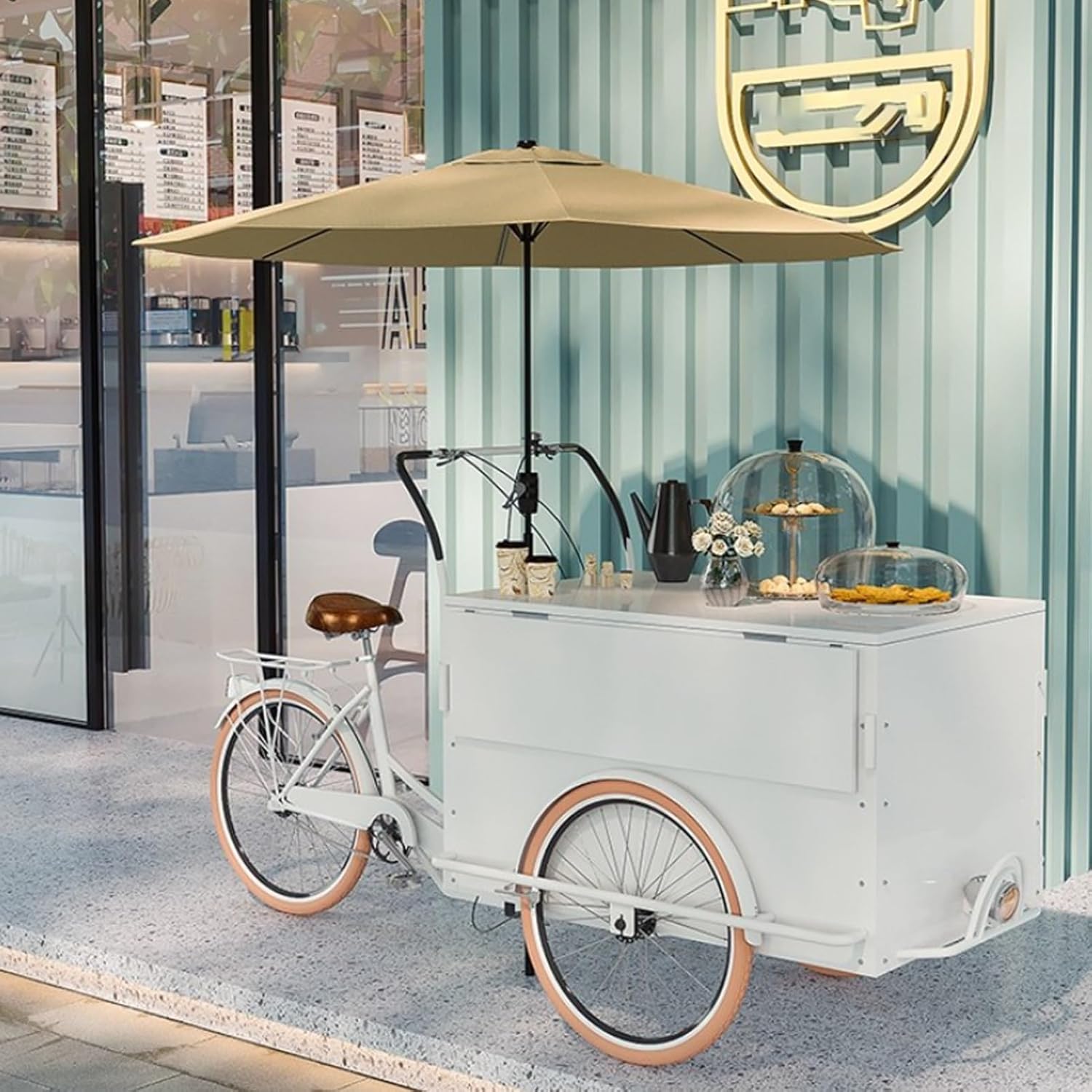 Outdoor Vendor Food CartThis professional mobile cart for street vending, farmers markets, festivals, campus events, or park concessionsWhy Choose Our Mobile Food Cart?All-in-One Mobile Setup – Arrive ready to sell in minutes.Built for Stability & Easy Movement – Navigate diverse terrains effortlessly.Maximize Your Productivity – Spacious layout for cooking, display, and storage.Key Features & BenefitsLarge, Lockable Storage CompartmentKeep all your essentials secure and organized. The generous space neatly stores utensils, ingredients, supplies, and personal items, so you have everything you need without clutter.Robust Rubber-Tired Wheels for Smooth MobilityMove your stall easily over pavement, gravel, or boardwalks. The high-quality wheels provide a stable base for operation and ensure low-effort transport, saving your time and energy.Wide, Easy-Clean Countertop with Ample WorkspacePrepare orders, display your menu, and interact with customers from a single, efficient station. The durable surface supports equipment like warmers, registers, or signage, enhancing both function and curb appeal.Integrated Safety Bell & Ergonomic FootrestThe included bell helps you alert crowds safely when moving. The built-in footrest reduces fatigue during long shifts, offering comfort where it counts.Ideal For: Aspiring & established street food vendors Festival & event food operators Market stall holders (farmers markets, art fairs) Beverage, snack, or dessert specialists Campus, park, or beach concession businessesTips:1. There may be an error of 1-3 cm due to manual measurement.2. There may be chromatic aberration due to the difference between the recording lamp and the display. Please refer to the actual product