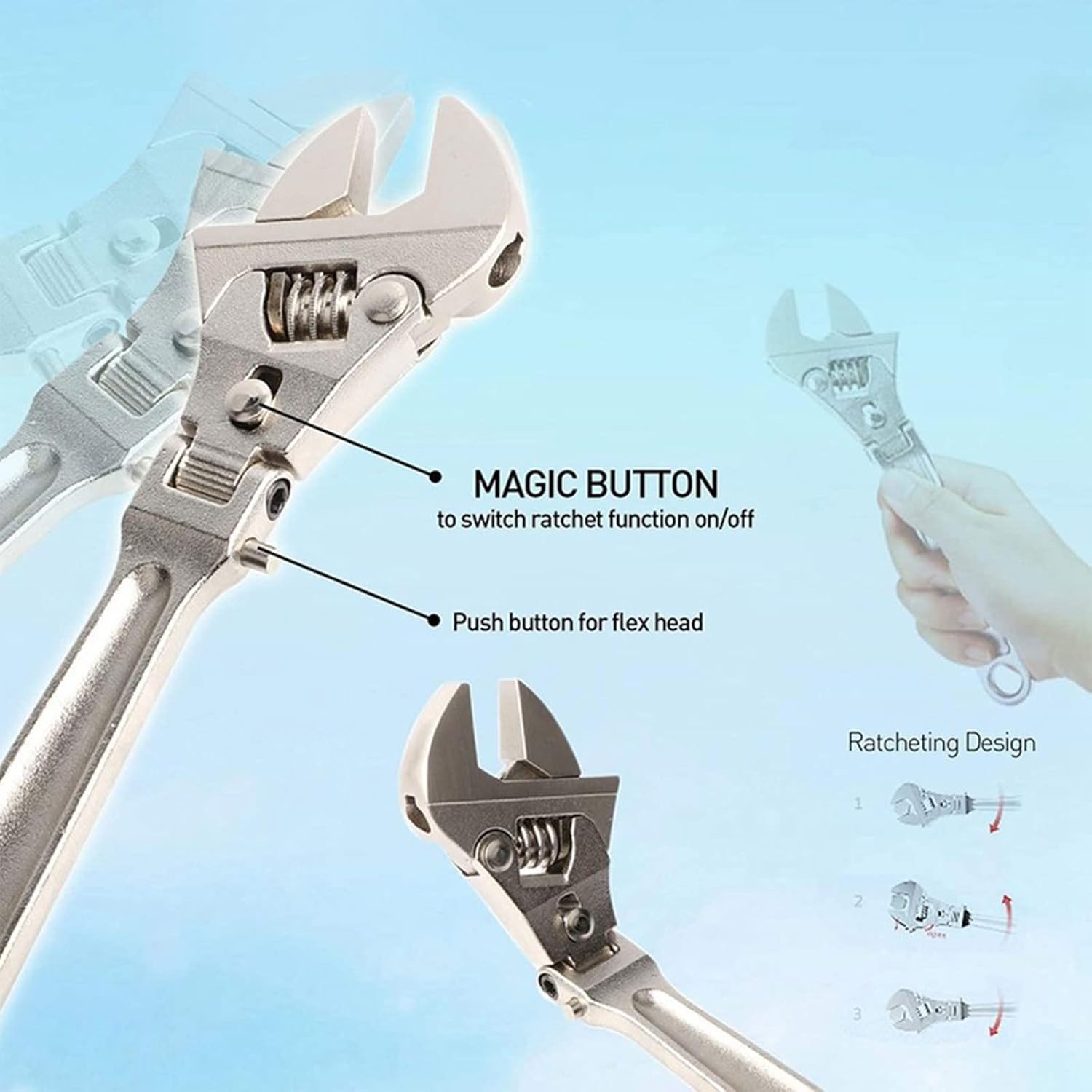 Professional Multifunctional Ratchet Wrench With 180° Rotating For Head Tool Steel For Repair Hydroelectric BathFeatures:and ● There are two 10 inches: opening: 32 mm length: 260mm / 8 inches: opening 24mm length: 205mm● tool steel is used to provide high strength and durability.● Rust rust using the metric dimension ● It can be folded 180 degrees.● The ratchet fixed mode can be tightened continuously.● The conversion can be used as a ratchet wrench and a common Specifications Tool SteelSize1: Approx.8inchSize2: Approx.10inchPackage Includes:1xAdjustable Ratchet WrenchNote:1.Please allow 1-2cm errors due to manual measurement, make sure that you do not mind before you order. 2.Due to the difference between different monitors, the picture may not reflect the actual color of the item.