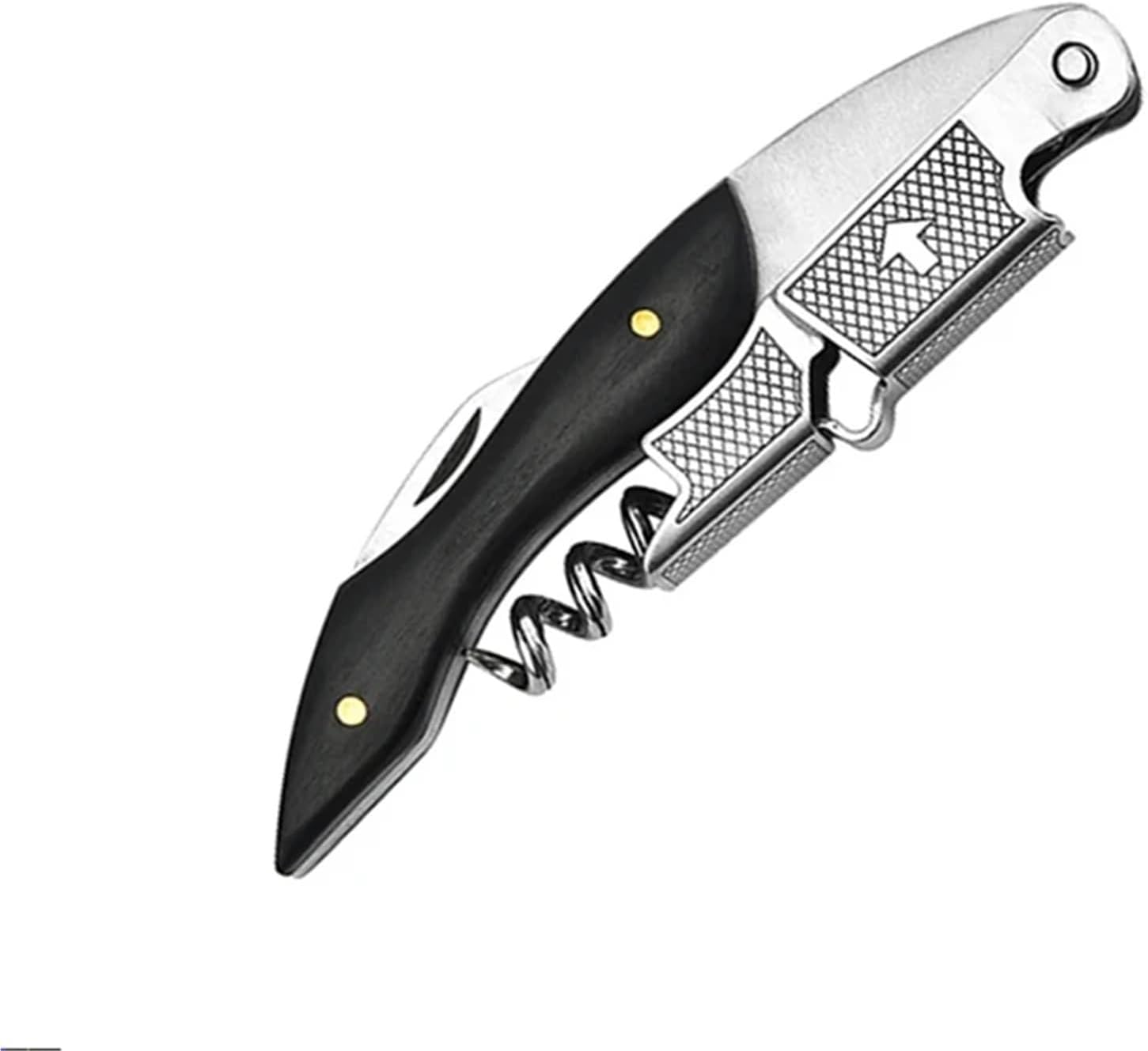 Jar OpenersProfessional Waiters Corkscrew,Wine Key with Ergonomic Wood Grip, Beer Bottle Opener, and Foil CutterThis corkscrew elegantly blends the characteristics of a wine corkscrew, bottle opener and foil cutter all together in a stylish wooden handle with comfort-grip. It inspires confidence and provides a fine tool's satisfying, strong height and feels good as a well-balanced kitchen knife in the hand.==========High-concerned chemical : NoneFeature : Eco-FriendlyMetal Type : Stainless steelOrigin : Mainland Type : Openers