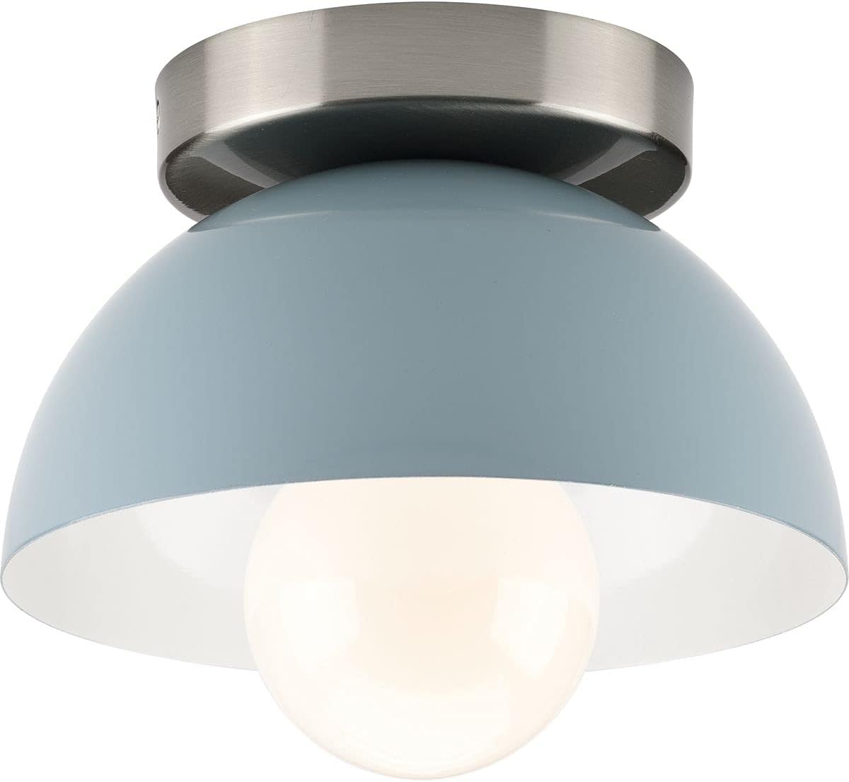 Offer nostalgic charm for today's home with a flush mount from the Eva Collection. A coastal blue shade is complemented by beautiful brushed nickel accents for an eye-catching, two-toned color scheme. Compatible with dimmable bulbs.