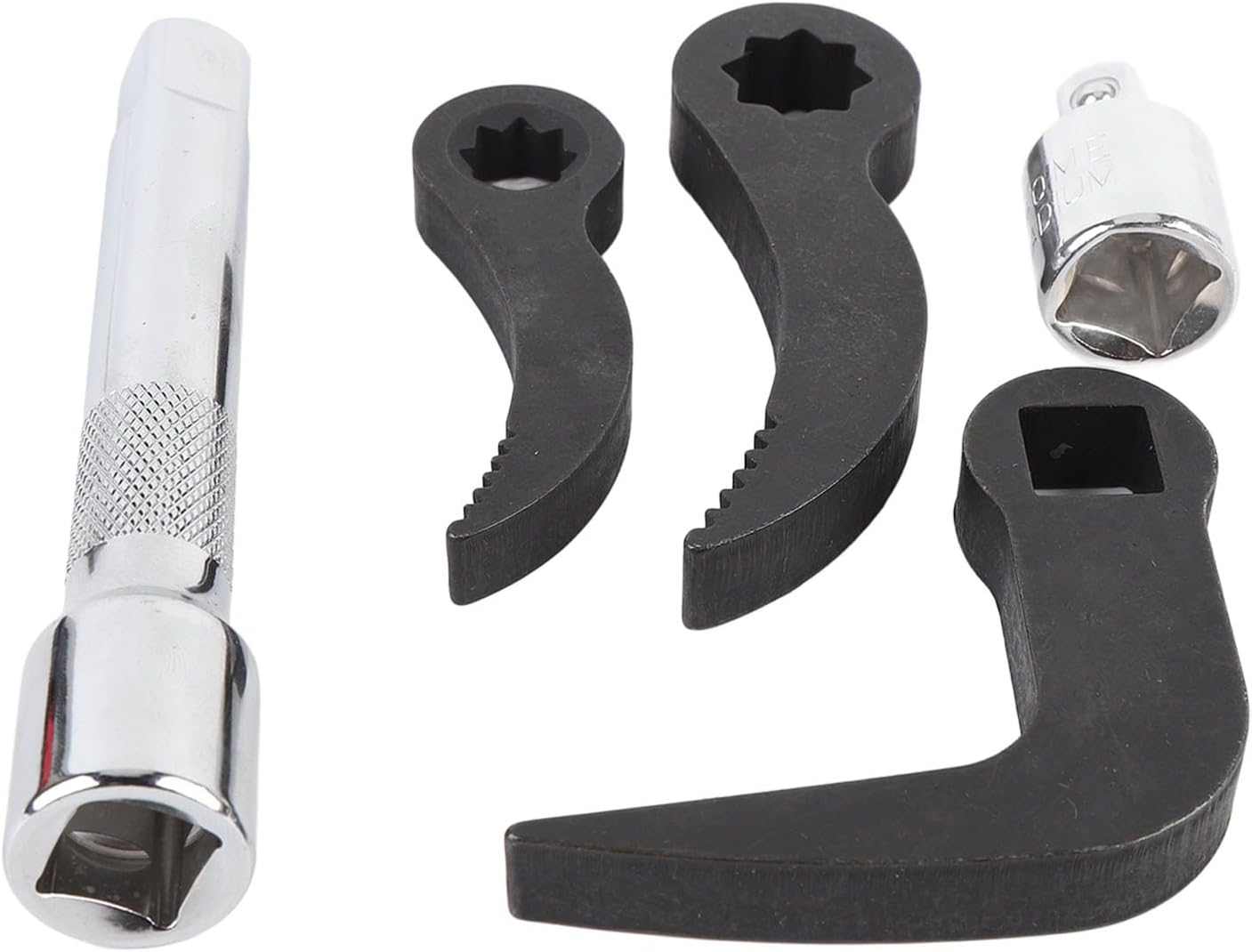 Specification: Item Type: Pry Bar Wrench Adapter Head Material: CRV, manganese steel Specifications: 1/2 inch D 8pt with sawtooth, 3/8 inch D 8pt with sawtooth, 1/2 inch square L shaped long version, 1/2 inch to 3/8 inch adapter, 1/2 inch extension bar New Upgrade: Sawtooth design, increasing friction Use: Specially designed for automotive drive shafts, helping you easily handle various disassembly needs How to Use: Directly use. Package List: 3 x Pry Bar Wrench Adapter Heads 1 x Extension Bar 1 x Adapter 1 x Storage Box