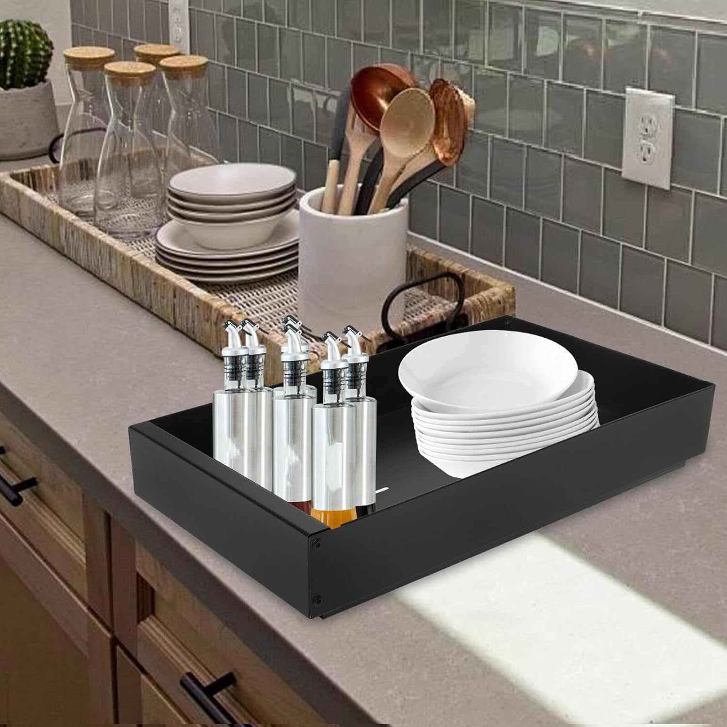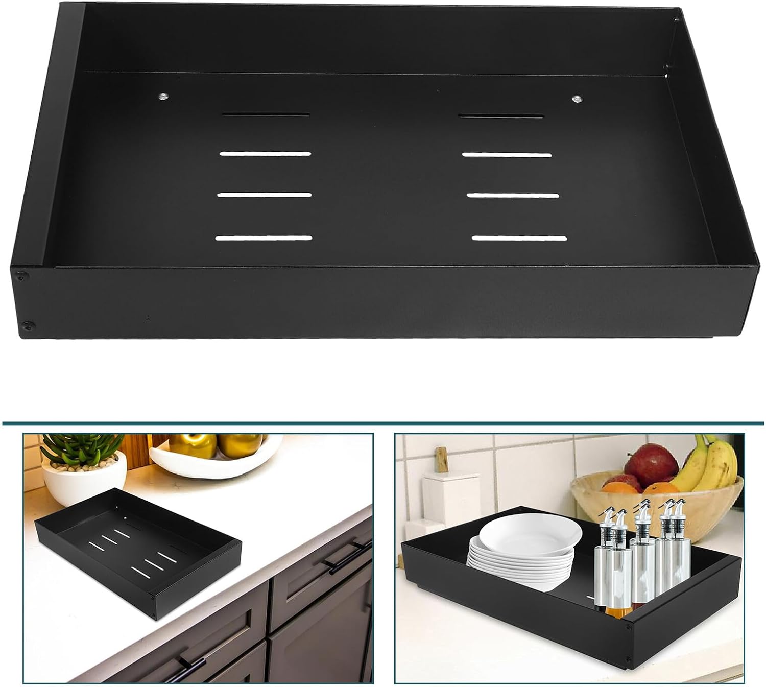 Package Include 1 x Pull Out Cabinet Shelf Features -Flexible divider system: adjust the internal dividers to create the fit for your dishes, ensuring optimal storage kitchen cabinet organizer -Size:42.00X26.00X6.00cm/16.51X10.22X2.36in -Material:Carbon Steel -Comprehensive kitchen organizer: It's for storing a range of kitchen items, helping to keep your cabinets neat and tidy slide out cabinet organizer -Color:Black -Product Info:Dish storage rack -No assembly needed: ready to use without any tools or installation, making it a convenient addition to your kitchen slide out drawer organizer -Effective draining feature: designed to allow water to drain off your dishes, faster drying and maintaining cleanliness living room storage shelves -Effortless slideout mechanism: the drawer slides out smoothly, allowing for easy access to your kitchenware and saving you time heavy duty pull out shelvesGoods Informationpull out shelf This pullout cabinet organizer is made from materials, ensuring use.film pull out drawers The slide out cabinet organizer is for storing a variety of kitchen items, from plates to pots and pans.heavy duty drawer rack The slide out drawers are designed to be sturdy and reliable, making them a great addition to any kitchen