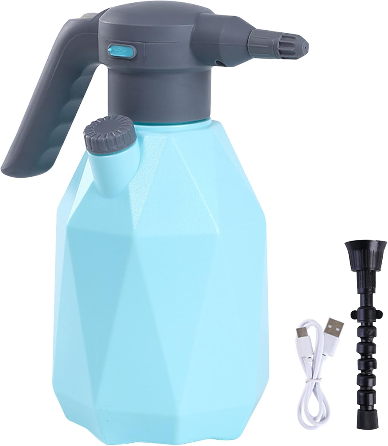 Description: Our automatic pressure electric sprayer is designed with cutting-edge features, is set to change your spraying routine. With an automatic pressure system, the necessity for manual labour is eliminated. The robust PP material ensures durability and a range of spray options while the large 2L capacity and convenient side-opening facilitate easy refilling. A powerful 2000mAh battery paired with easy USB charging and water-proof design makes your work uninterrupted and efficient. The adjustable spraying head and visible scale further enhance user convenience and adaptability. In a nutshell, our sprayer is a powerhouse of efficiency and convenience, designed to cater to all your spraying needs. Features:. Electric Sprayer. -Color: As Shown. -Material: PP. -Height: about 27cm/10.63inch. -Volume: 2L. -Battery: 2000mAh. -Working Time: 2-3H with Full Battery. Note: Manual measurement, please allow slight errors on size. The colors may exist slight difference due to different screens. Package Including 1 Piece Electric Sprayer.1 Piece Charging Cable.1 Piece Extension Nozzle.