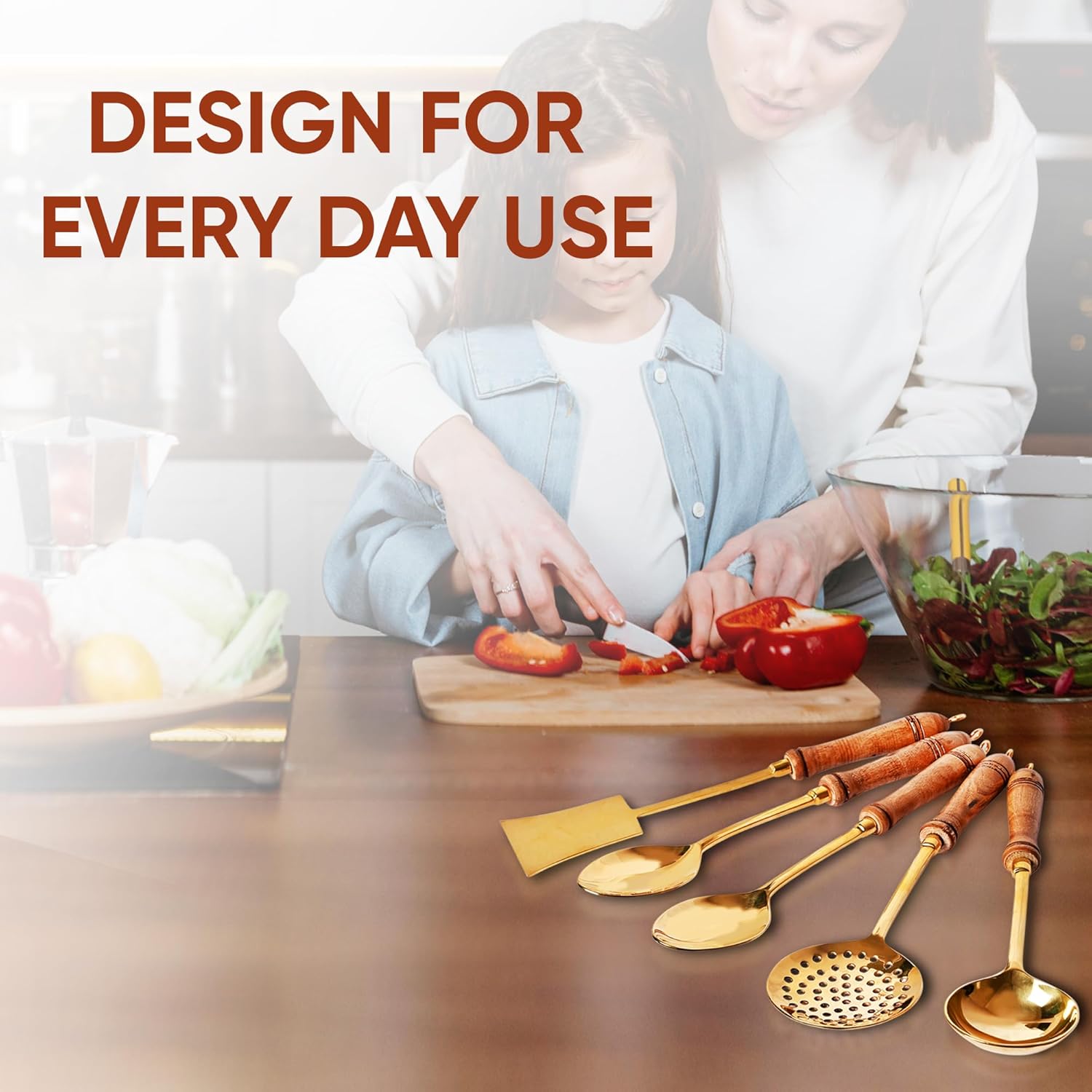 Product Description1 Crafted from high-quality pure brass (pital), this beautifully designed set combines traditional charm with everyday functionality.2 Featuring a rich golden finish, each utensil is carefully made to offer durability, strength, and long-lasting shine.3 Ideal for both cooking and serving, this versatile set includes essential tools such as a ladle, spatula, and salad spoon—perfect for preparing and presenting meals in a traditional style.4 Brass is known for its sturdy build and classic appeal, making this set a wonderful addition to your kitchen collection.5 Whether used for daily cooking, festive occasions, or special gatherings, these utensils add a royal and authentic touch to your dining experience.