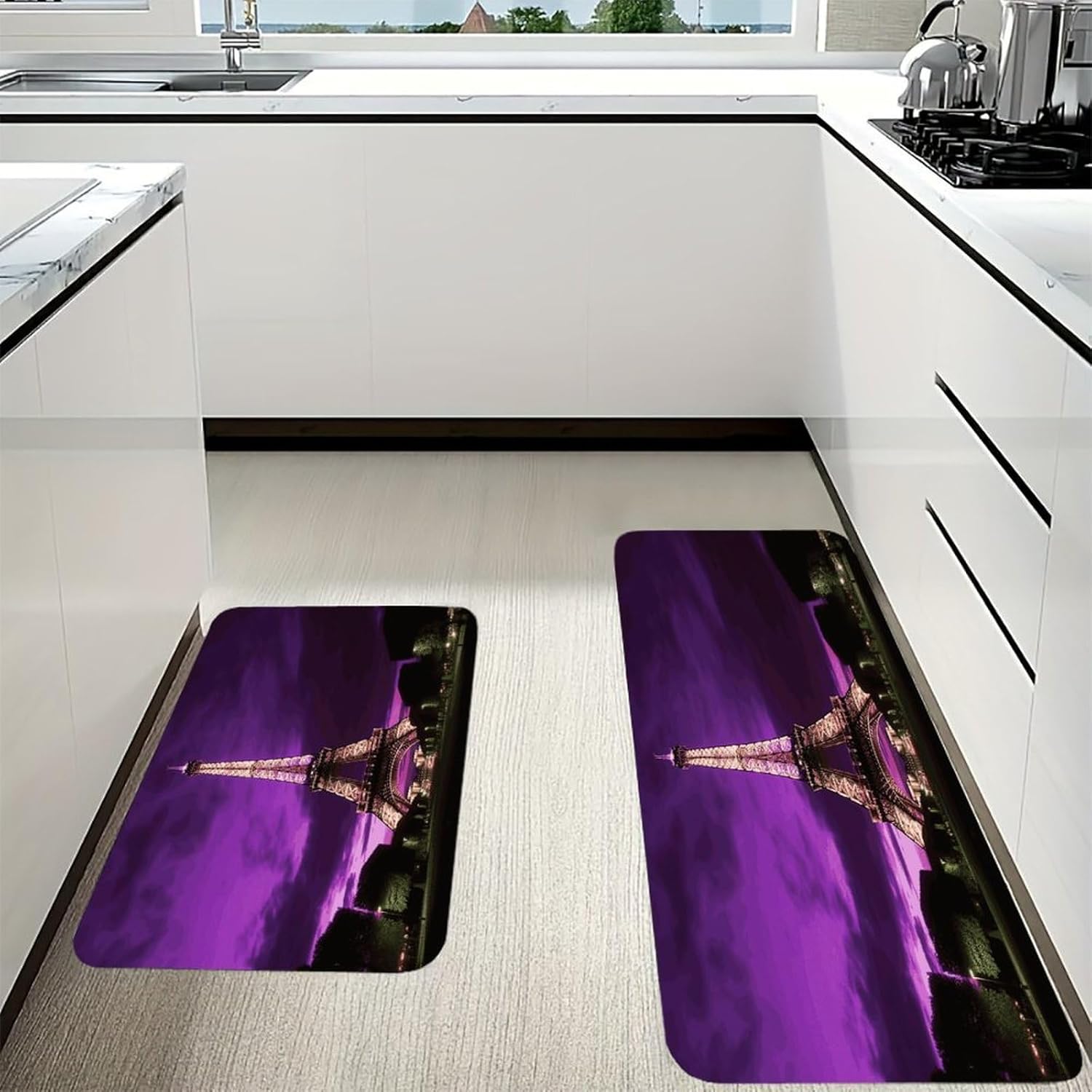 Step into instant comfort with our 2-piece Cushioned Anti Fatigue Mat set, designed to transform every standing moment into a relaxing experience. As a Comfort Desk Mat, it also eases the strain of long workdays, making it a versatile addition to any home.The Cushioned Anti-Fatigue Non-Skid Rug core offers plush support that hugs your feet, reducing the tension that comes with standing for hours. Unlike thin, flimsy alternatives, this Purple Eiffel Tower Kitchen Rug is made with pill-resistant flannel that stays soft and neat through repeated use. It doubles as a Non Slip Comfort Standing Mat in your laundry room, taking the stress out of folding clothes or loading the dryer.Perfect for modern and rustic spaces alike, this Farmhouse Anti Fatigue Mat combines style with practicality. Use the Cushioned Kitchen Rug in your bathroom for a soft step out of the shower, or bring it outdoors for a comfortable spot to garden. Every detail is crafted to fit your busy lifestyle, from the easy-to-clean fabric to the multi-room functionality that makes this set a household staple.