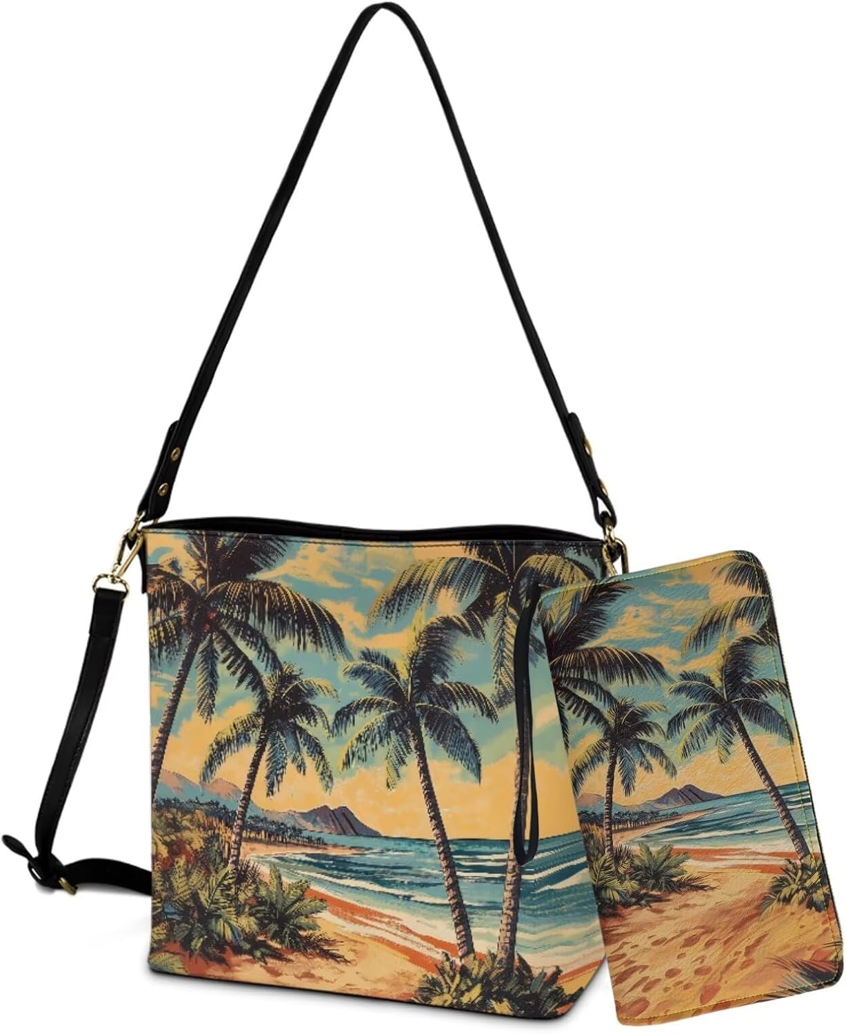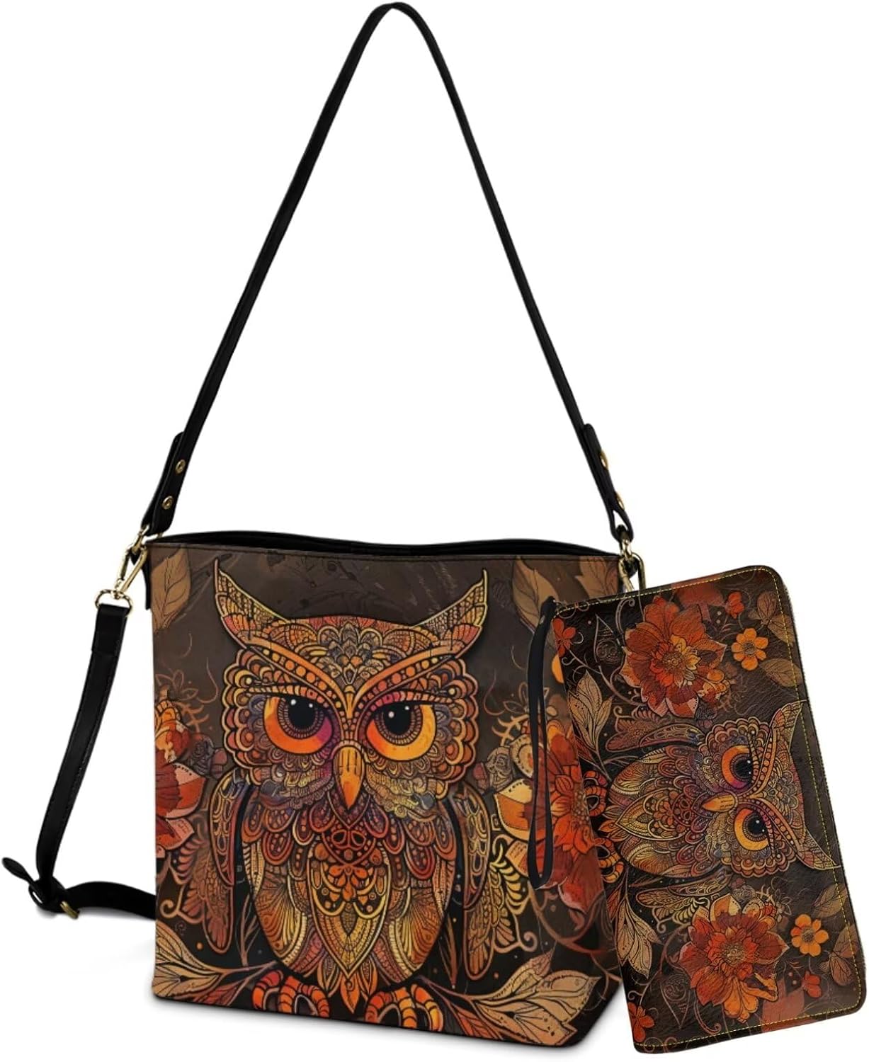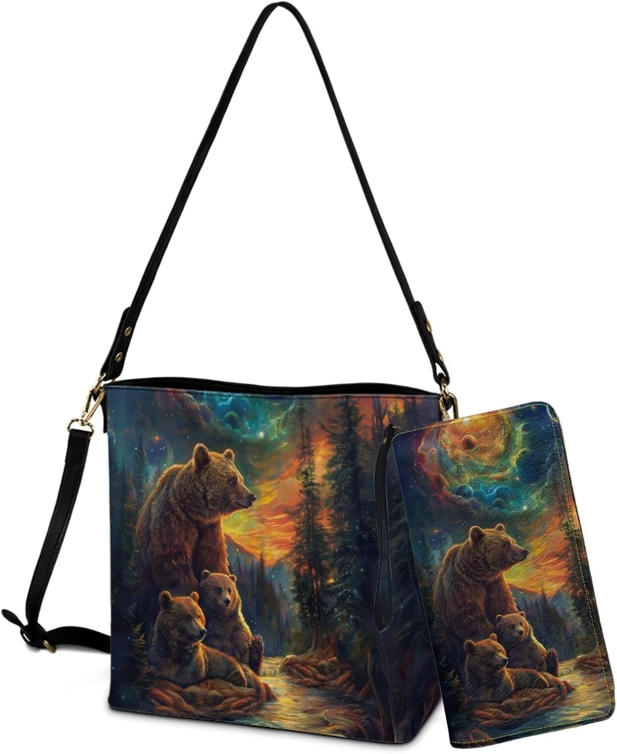 Are you looking for a bag which can wear in different ways to meet different occasions? Do you want a purse set which can not only organize your things but also have vivid pattern? If yes, our bucket purse and wallet set is a good choice for you. Two-way to Wear Two-way to Wear: Our bucket handbag comes with 2 detachable straps; One is shorter, another is longer and adjustable; You can use it as a tote bag, a sling bag or a crossbody purse by using suitable strap Convenient Design A main bag with 1 zipper inner pocket and 2 inner open pockets inside the bucket bag, keeping your things organized in their suitable place; The buckle closure on the top allows for easy access Leather Wristlet Wallet The wallet has 4 card slot for cards , 1 sandwich for changes, 1 big sandwich for mobile phone, money etc; The wrist strap helps you hold the wallet firmly; You can use it as a insert bag of the tote bag or just use it separately Ideal Gift Our purse and wallet set has many vivid patterns to choose from, which can meet different preference. It is a perfect gift for her on Birthday, Christmas, New Year, Thanksgiving Day, Halloween or other important days and occasions Please allow a little error (usually 1 to 2 cm) on the size due to different measure methods. Please allow a little color different due to different display or light environment.