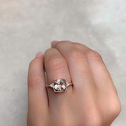 Elevate your special moments with this stunning 2.50 Ct cushion cut engagement ring. The lab created peach morganite solitaire takes center stage with its romantic, soft hue and brilliant sparkle. Crafted in 925 sterling silver with an elegant 14K rose gold finish, this ring perfectly balances luxury with lasting beauty. The cushion cut stone adds a contemporary yet timeless appeal, while the sophisticated design makes it an ideal choice for both engagements and special occasions. The rose gold finish complements the peachy tones of the morganite, creating a harmonious and eye-catching piece. This ring serves as a beautiful symbol of love and commitment, designed to capture attention with its generous stone size and refined craftsmanship.