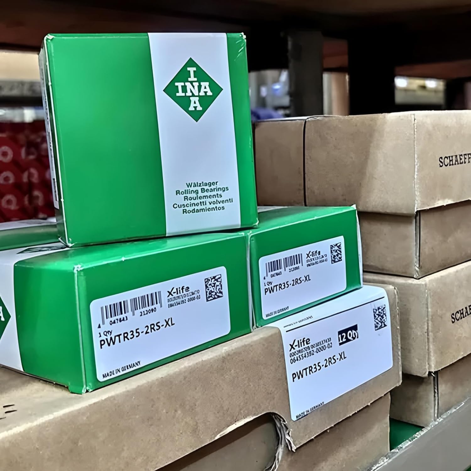INA PWTR35-2RS-XL Yoke type track rollers bearing full complement cylindrical roller set with axial guidance lip seals on both sides; Support rollers (yoke-type track rollers) are designed to run on all types of tracks and to be used in cam drives;conveyor systems;etc; They are based on a double row full complement cylindrical roller bearing with an inner ring and have a thick-walled outer ring with a crowned running surface; They are supplied sealed and ready-to-mount; The inner ring contains a lubrication hole to facilitate relubrication