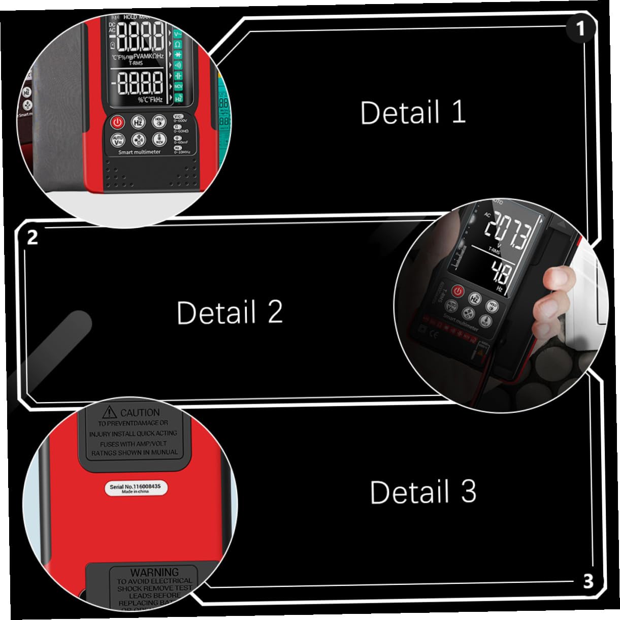 Package Include 1 x digital multimeter (without battery) 1 bag 1 x manual 1 x lanyard 1 x packing box Features - Battery: AAA Battery*2 (Not included) Voltage Current Meter. - Room temperature measurement: 0~40℃ Ohm Volt Current Tester. - DC voltage: 0~600V Auto Multimeter. - Material: Canvas, ABS, electronics, rubber, copper. - Capacitance: 0~6000mF Home Multimeter. - Hertz/frequency: 0~1000MHz Multimeter for Repairing. - Size: About 12.50X8.00X2.30cm/4.91X3.14X0.90inch. - voltage: 0~600V Electrician Tool. - Resistance: 0~6000MΩ Portable Multimeter. -Product Info:Digital multi-purpose table - With flashlight, it brings great convenience to your use, especially at night Electrical Repair Tool. - The maximum display is 6000 counts Meter Equipment. - Preferred materials, , safe, durable and practical. - This is a good helper for electricians, it can measure current, voltage, resistance, etc Voltage Current Tester. - Easy to operate, simple to use, can better help you save time and energy Multimeter for Home. - The product has fine workmanship, excellent durability and practicality, and Electrical Repair Supplies.Goods DescriptionOhm Volt Current Tester It is made of craftsmanship and high-performance materials, with excellent durability and practicality.Portable Multimeter The scientific design makes it possible to measure accurately and provide you with more accurate data.Electrical Repair Tool Do you need an efficient and practical multimeter to check or repair electrical appliances? Our products will be your good choice