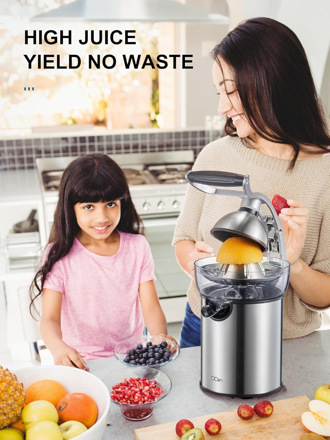 QCen 800W Juicer Machine Metallic Black and Electric Citrus Juicer Squeezer Bundle