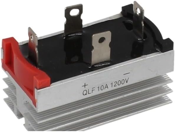 Schottky DiodesQLF10A Single-Phase Bridge Rectifier Diode 10A 1200V with Heatsink RadiatorAexit Bridge Rectifier 1 Single Phase Diode 10A 1200V QLF10AHeatsink design. Convert your single phase current input into DC with this Bridge Rectifier. This bridge rectifier can be used in a wide variety of applications.Rectifier bridge 1 single-phase diode 10A 1200V QLF10AProduct name: rectifier bridge; Model: QLF10A/1200V; Output Current (DC): 10ARepetitive Peak Reverse (AC): 1200V; Thread Hole Diameter: 5mm / 0.19''Main Size: 59 x 35 x 26mm / 2.3'' x 1.4'' x 1.0'' (L*W*H); Total Height: 40mm / 1.6''Material: Aluminum, plastic; Color: as pictureNet weight: 86g; Package Contents: 1 x Bridge Rectifier