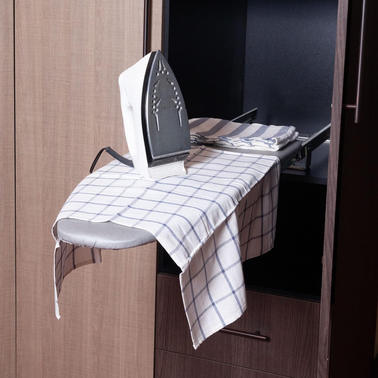 Our Compact Retractable Ironing Board is the perfect solution for small laundry rooms, tiny homes, and studio apartments. This ironing board can be easily retracted and folded, making it convenient to store in a wardrobe or cabinet. The high-quality slide rails ensure easy push and pull without any effort, while the thick anti-hot canvas fabric is easily removable for cleaning. Made of durable materials, it weighs a total of 17.5 pounds and has a folding height of 4.5 inches, with a total length of 31.5” when open. Installation is easy with hardware included, and minimum drawer dimensions required for installation are 14" W x 20" D x 6" H.
