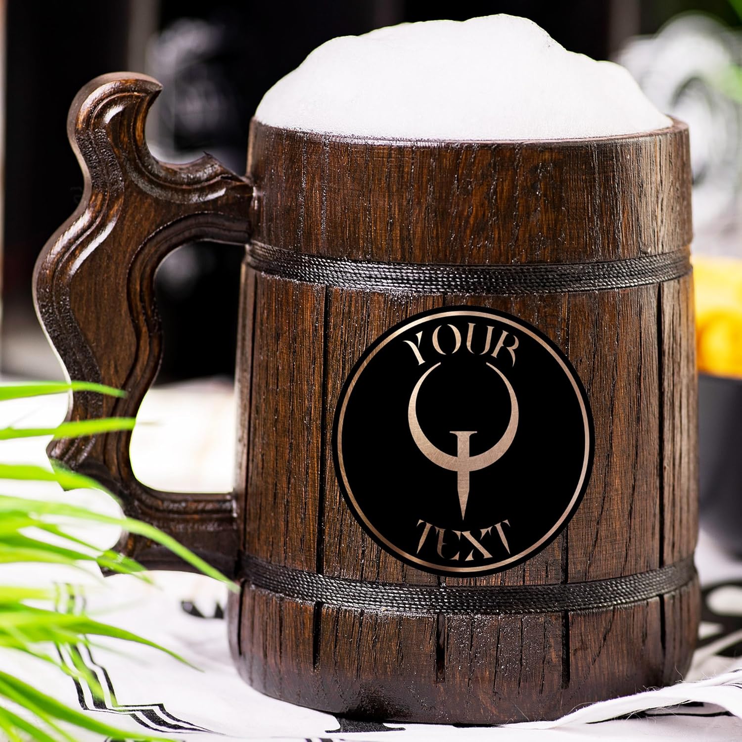 Unique handmade wood tankard is a right choice, if you are looking for gift ideas for men, he will enjoy drinking beer from it. The stainless steel insert inside the wooden casing of the mug will keep the temperature of the beer colder, for a longer period during the summer. All enthusiasts of beer along with fans of football or soccer; medieval fantasy novels and role-playing games; or just lovers of renaissance stylish and carefully handcrafted oak wooden mugs will adore such gifts! Handmade mugs are a perfect gift for grooms and groomsmen. This mug is great for any occasion - birthdays, name days, weddings, graduations, father's day, or any other significant occasion! Purchase several for your bachelor or bachelorette parties to impress your guests. There is no better gift, than a wooden mug with stainless steel cup, for a man or women who loves beer or other cold drinks. Handmade of natural oak wood and accomplished in a dark brown color, this solid mug gives beer its own particular taste.