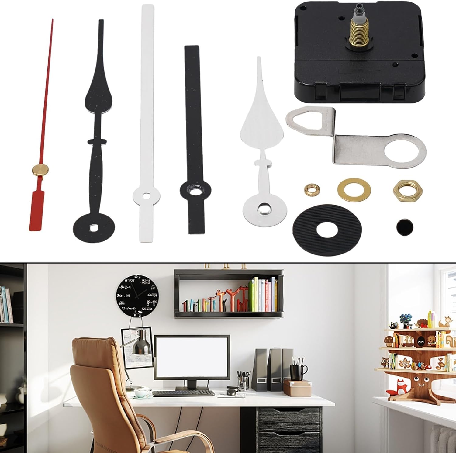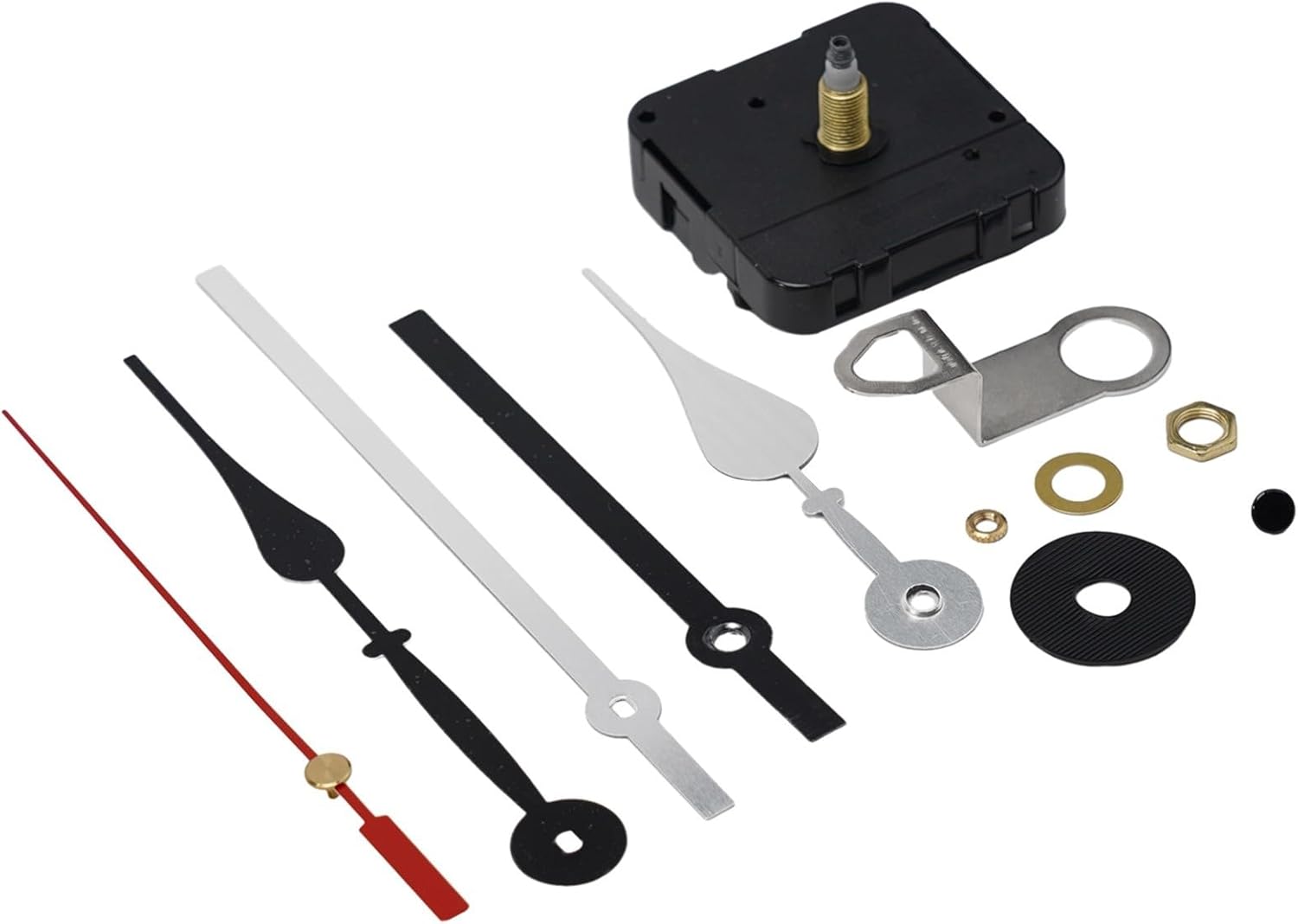 Product description Features:- Quartz clockworks creeping 3 pointer wall clock Single parts clockworks.- Quality quartz movement, long life guaranteed.- Complete with 102 mm hour hand, 135 mm minute hand and 115 mm second hand.- Energy efficient. Accurate timing.Specifications:- Material: metal, plastic- Color: black, chrome,red- Shaft length: 11.7 mm- Hour hand: 102 mm- Minute hand: 135 mm- Second hand: 115 mmPackage includes:- 1 x high torque movement- for 2 x hour hand- for 2 x minute hand- 1 x second hand- 1 x second head- 1 x through nut- 1 x black rubber pad- 1 x Filigree- 1 x nut- 1 x hook Manufacturer Contact Information no