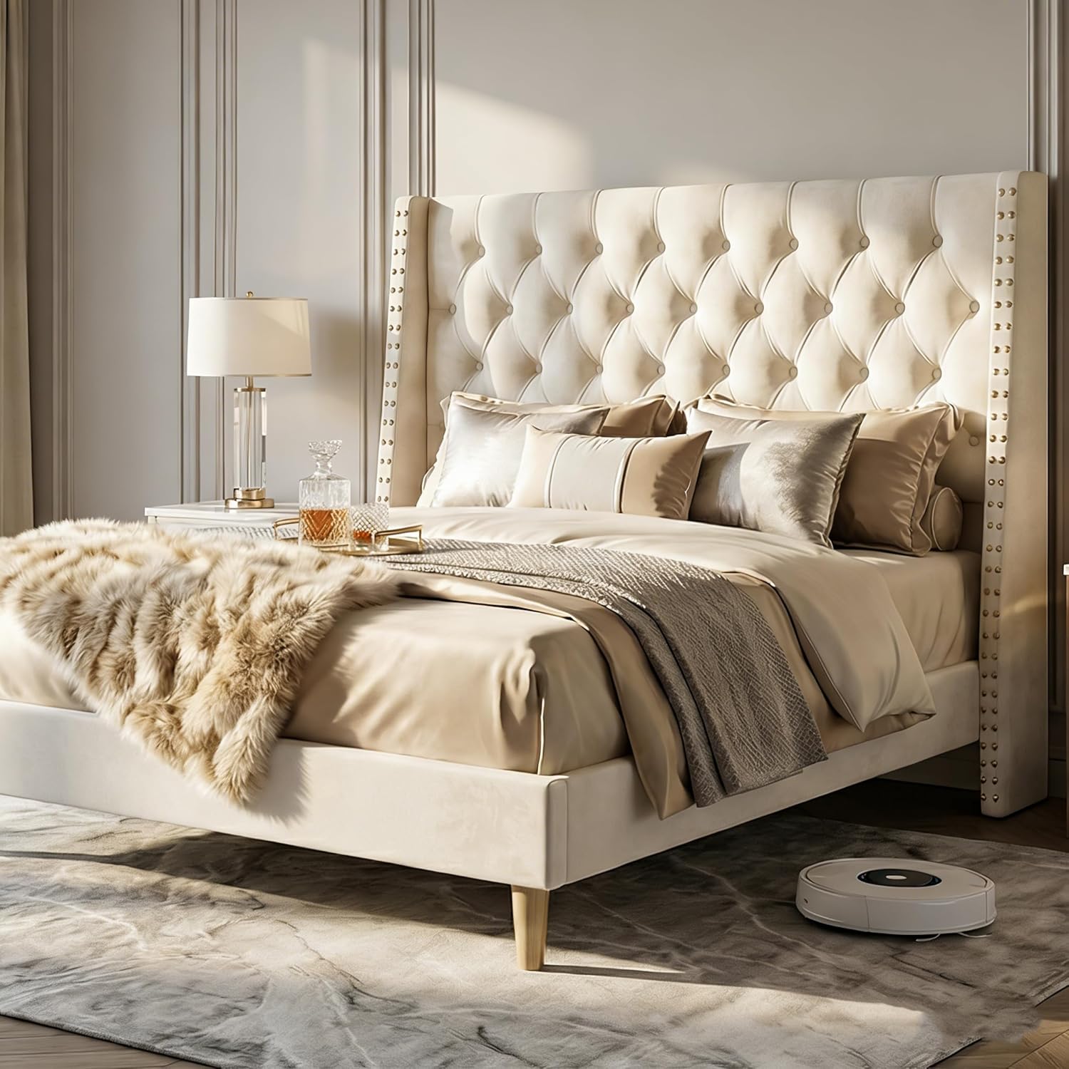 | Headboard Material | Velvet Upholstered, Wood Frame, High Density Foam |