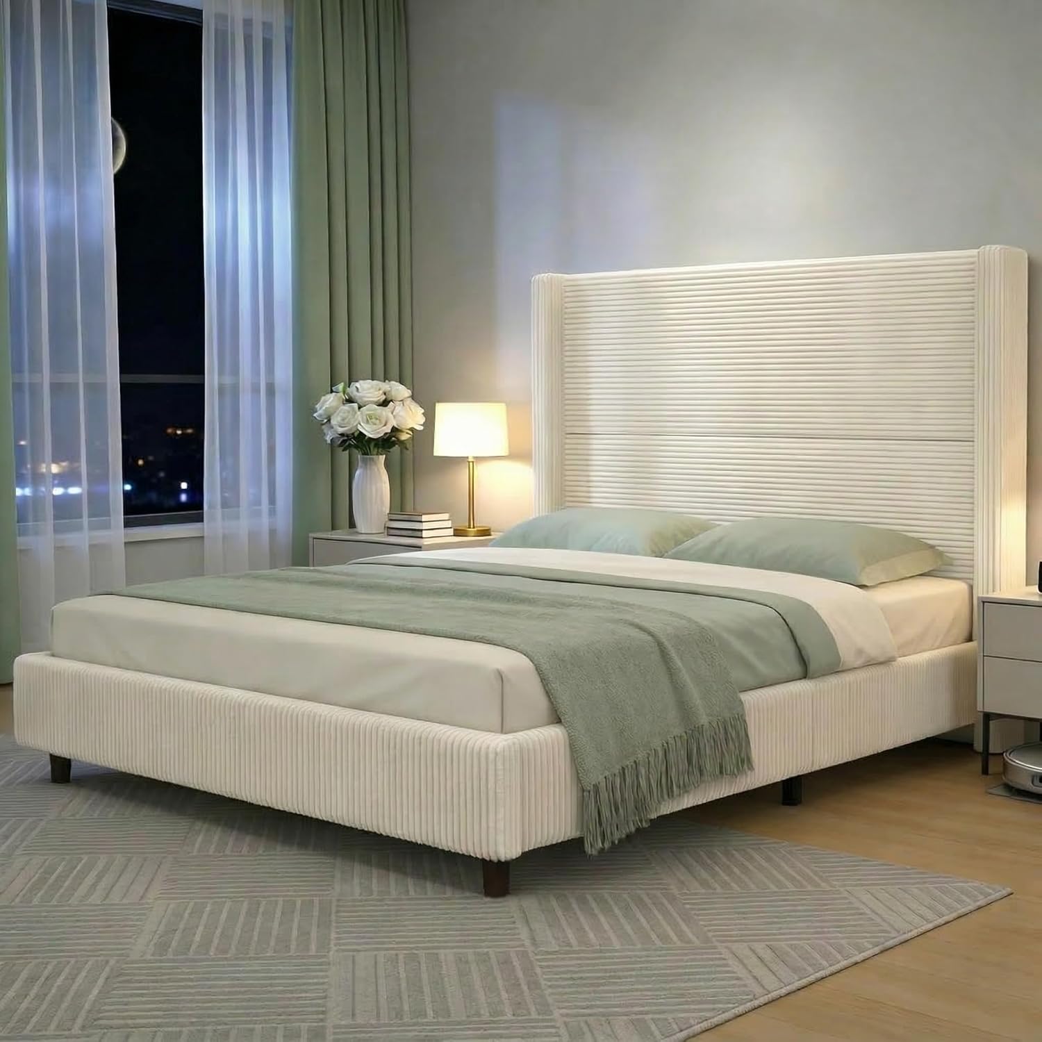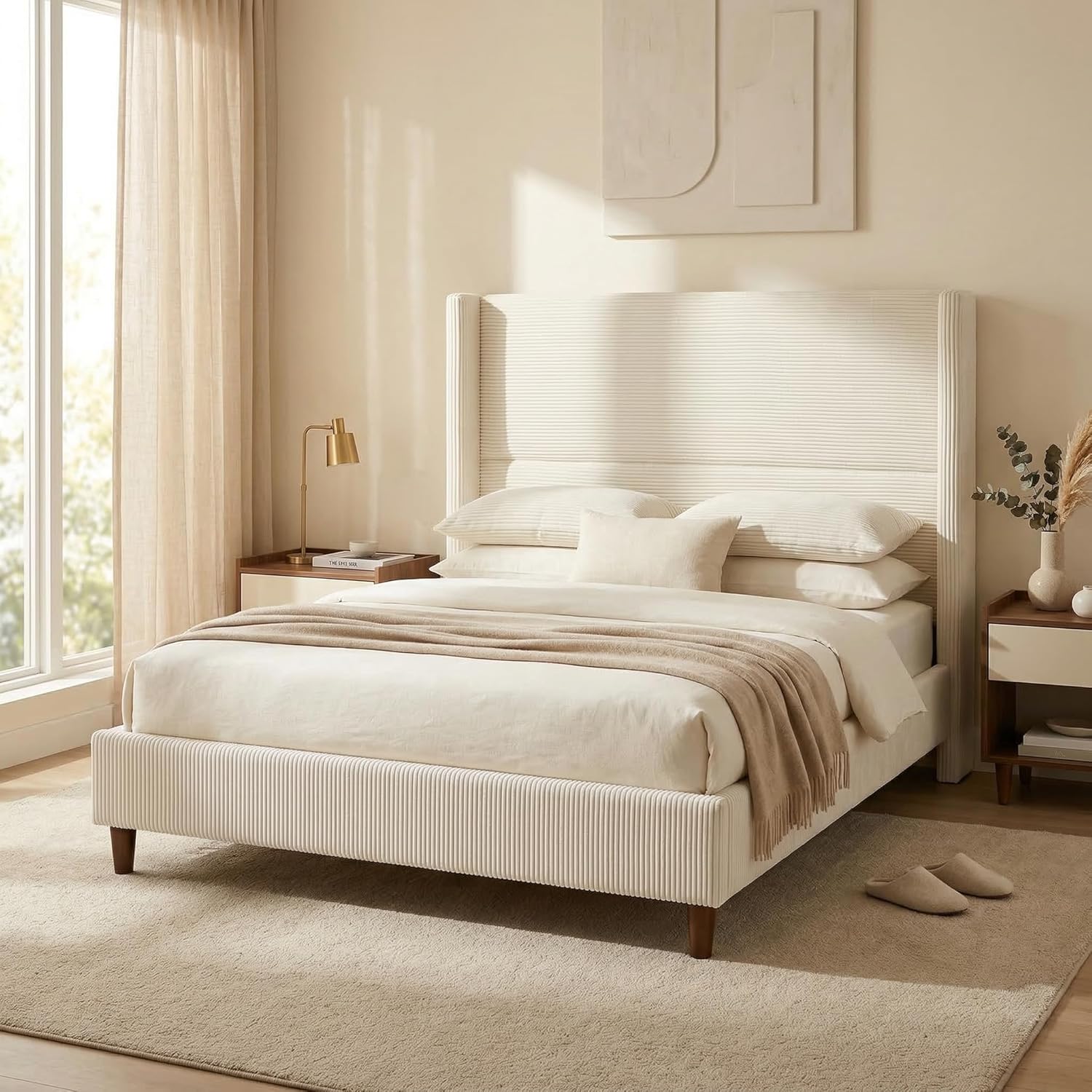 | Other Special Features of the Product | Luxurious Headboard Shape, Soft Corduroy Fabric, Sturdy Solid Wood Legs, Tall Headboard, Wingback Upholstered |