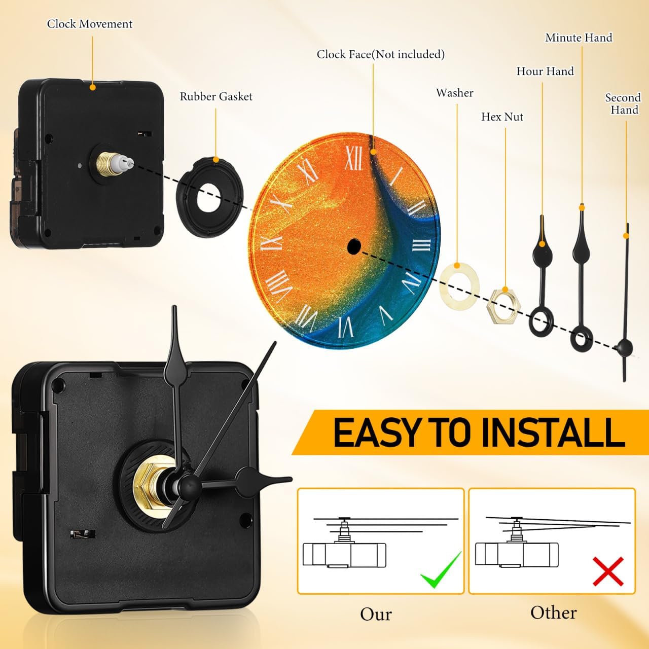 Box contents: 1 x movement, 3 x clock hands. Features - Size: 4.00 x 0.50 x 0.10 cm / 1.57 x 0.20 x 0.04 inches, replacement mechanism for movement - Colour: black, battery operated clock works. - Size: 3.10 x 0.50 x 0.10 cm / 1.22 x 0.20 x 0.04 inch clock movement kit. Thread: 5.5mm battery movement Movement Size: 56 x 56 x 16mm, Battery Operated Replacement Wall Clock Movement - Material: plastic, metal (replacement for clockwork). Product information: clock movement for wall clock. - Size: 4.00 x 0.50 x 0.10 cm / 1.57 x 0.20 x 0.04 inches, replacement battery watch set. Plate Thickness: 1-2.5mm (Wall Clock Replacement Mechanism) Panel diameter: 8-10 cm, battery operated clock works Shaft length: 13 mm, small clock movement kit, battery operated - Silent design with extremely low noise level, does not disturb rest or learning; battery replacement This clock movement repair kit will add a touch of creativity and uniqueness to your home decor. The high-precision movement ensures accurate time keeping. Thanks to its compact design, it is suitable as a replacement for movements with a dial diameter of 10-12 cm. - Ideal for anyone who likes to DIY and design their own unique home decoration (replacement for digital clockwork). Product Description Pendulum Clock Repair Kit - Are you looking for a professional and practical repair kit for your pendulum clock? Our repair kit will meet your needs. The small battery operated clock is made of durable plastic and metal, making it durable and resistant. The careful workmanship guarantees functionality and durability.