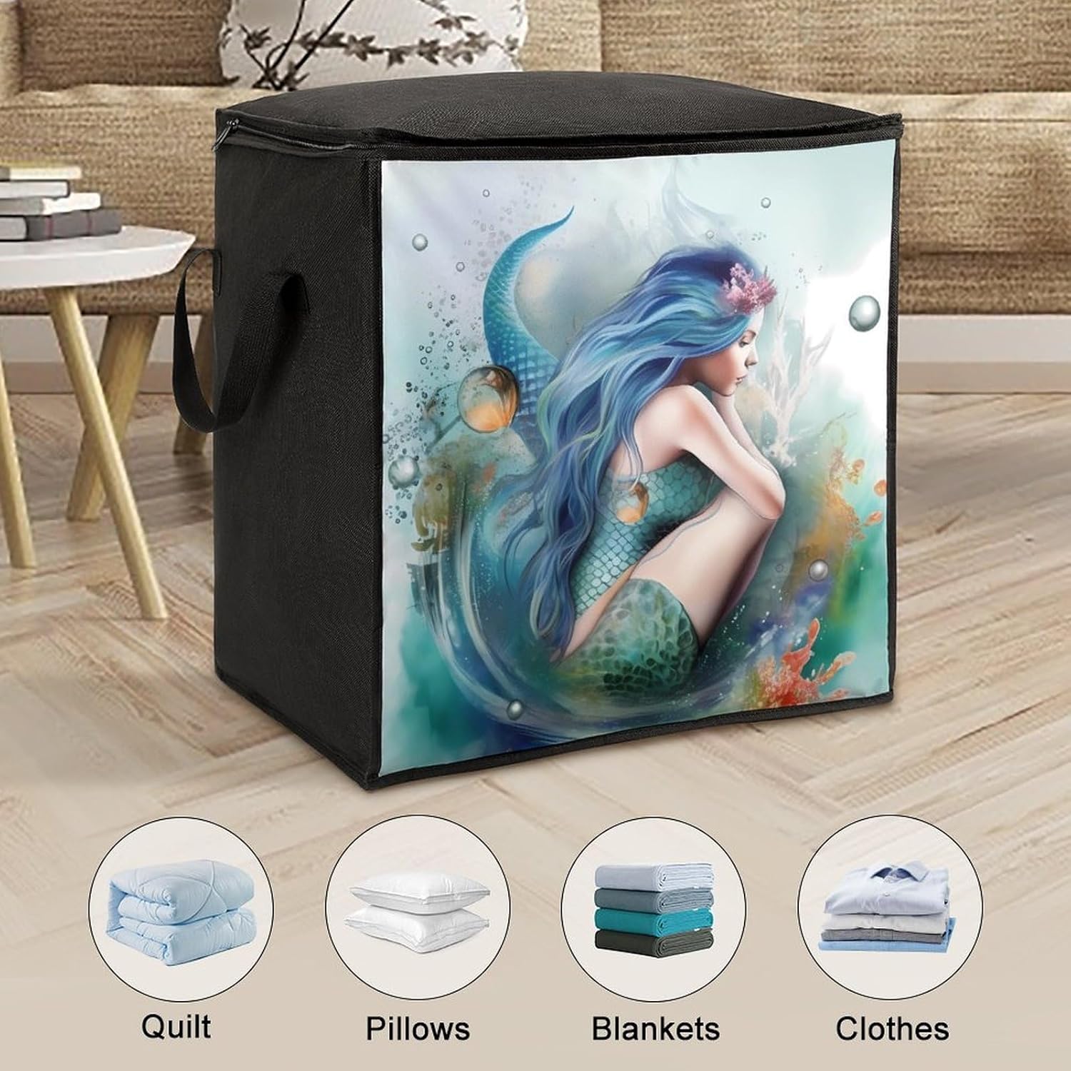 The clothing storage box can be folded when not in use, and can be stacked after being filled with quilts, blankets, etc., saving space. It is very suitable for small spaces such as homes, college dormitories, bedrooms, basements, attics, etc This sweater storage bag helps to free up space and keep everything organized; the storage bag can be used in wardrobes or cloakrooms, and is also a good choice for use in college dormitories, attics, and bedrooms