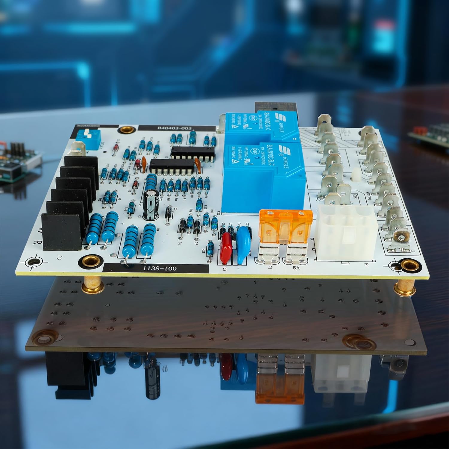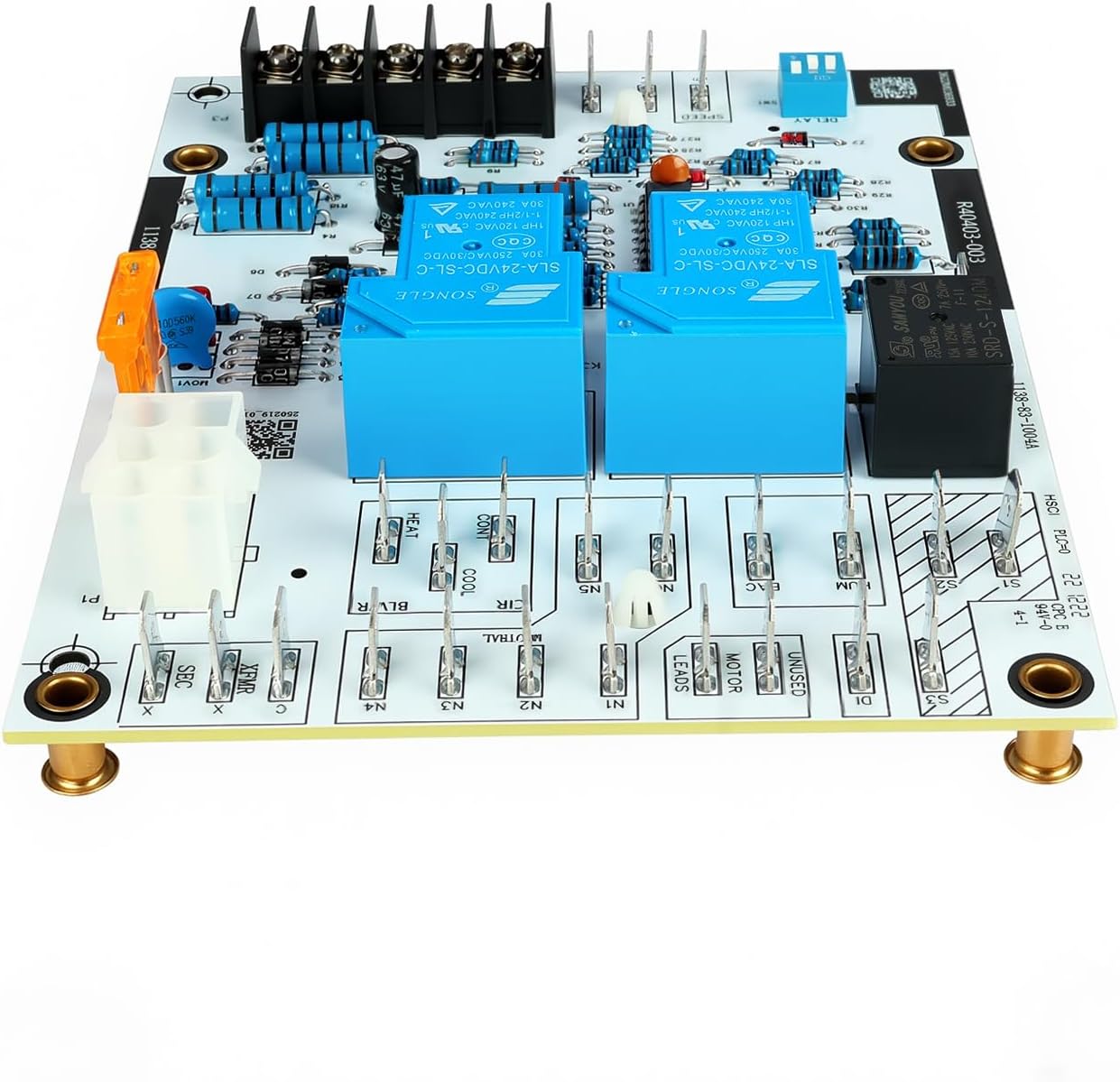 Replaces part number: This blower control board can replace all blower control boards of 40403-001, 40403-002, 40403-003, 20054502, as well as ST9120A, B, or C. It can also replace parts with part numbers R40403-001, R40403-002, R40403-003, 20054501, ST9120C 2010, 1138-83-1002A, 87H88, R20054502, R38493B001, 87H8801, 1138-100, 1711, HCSI PLC=0, 164322, T9AV5D12-22, 16391, CPC E 94V0, and 1138-83-1003A. Function: This blower controller provides output for a dual-speed indoor blower motor and a single-speed induction motor. Material: This product is made of PCB material and is moisture-resistant and durable. No wiring kit required. Whether it is using the original wiring or the updated wiring, it will work well. Design: The controller receives input from the thermostat (W, Y, and G), pressure switch and high temperature limit switch, and provides a user-selectable blower delay function through the dial switch settings. The controller's 24-volt circuit is protected by a 5-amp replaceable automotive fuse. Package included: 1*Air Furnace Blower Control Circuit Board. This product contain instructions.