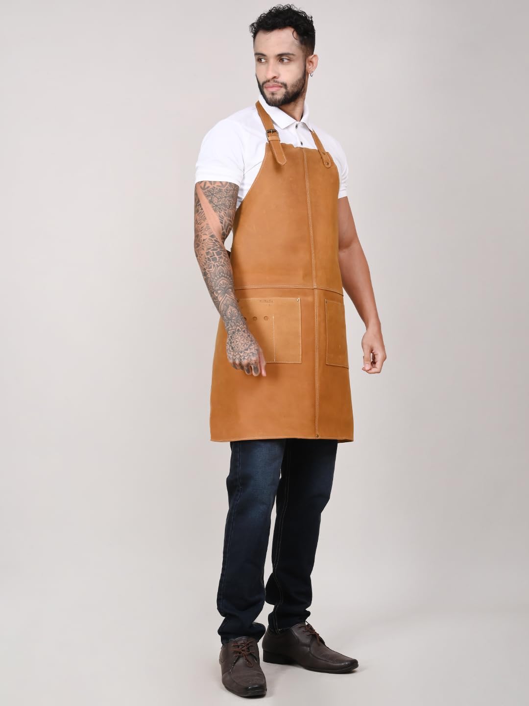 Rabada introducing Heavy Duty Cow Leather Apron – a versatile apron with durable work wear essential. Designed as a perfect woodworker's apron and can be used for all types of carpenters and Industrial wood workplaces. A welder Apron is made of fine leather and has high resistance to heat and flame. A perfect leather apron is a perfect BBQ enthusiast apron, Its sturdy leather and resistance to heat and flame make it the best apron for blacksmiths, and various industrial settings. Crafted from high-quality cow leather, this apron offers superior protection against heat and flames, ensuring safety in demanding work environments. Whether you're working in a workshop, handling welding tasks, firing up the grill, or managing industrial operations, our Heavy Duty Cow Leather Apron is your reliable companion. Invest in quality, comfort, and safety for your work wear needs.