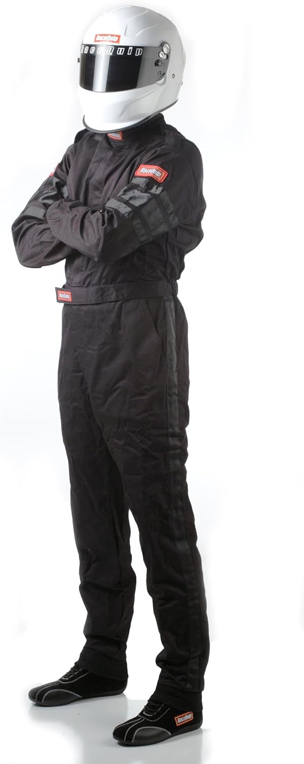 This racing bundle pairs a RaceQuip single-layer fire suit with RaceQuip racing gloves to provide complete flame protection and comfort. The fire suit is SFI 3.2A/1 rated with a TPP rating of 11, offering robust heat and flame protection through its durable Pyrovatex FRC material. It retains the breathability of cotton for comfort. Design accents like contrasting arm stripes, cuffs, epaulets and collar provide style. Conveniences like internal pockets, two-way brass zipper and adjustable belt maximize functionality. The RaceQuip gloves have an SFI 3.3/1 rating for flame resistance. Their single layer Nomex knit construction is soft and supple. The grey suede leather palm provides excellent grip, with a hook and loop adjuster for a secure fit. Together, the suit and gloves make an ideal bundle for race car drivers and pit crew. The suit protects the body while the gloves shield the hands - both with trusted certification. The focus on comfort and design makes this bundle well-suited for safe protection without sacrificing style.