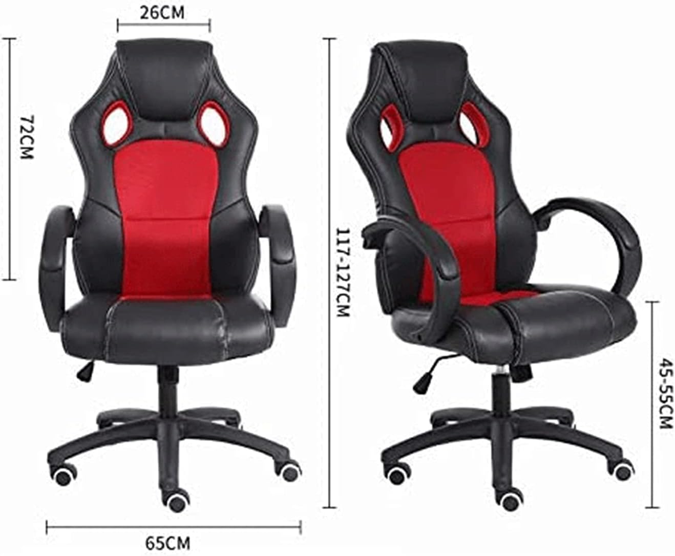 Features: All parts of the leather are used with the same PU leather as its seat, which effectively reduces the chemical smell. Thick and high density foam ensures comfortable sitting and without deformation during prolonged use. Padded with high quality soft PU leather and padding including the armrests for superior comfort and lumbar support. 360 degree rotation, tilt function, upright locking function. Seat height adjustable. Designed to spend hours of sitting and relieve body tension. Material: PU + Sponge + Iron + Nylon Adjustable armrests: no. Tilt mechanism: yes. Height Adjustable: Yes Maximum load: 150 kg. Package Includes:1 x Office Chair If you have any doubt about the product, please send us an email, we will give you a satisfactory answer as soon as possible.