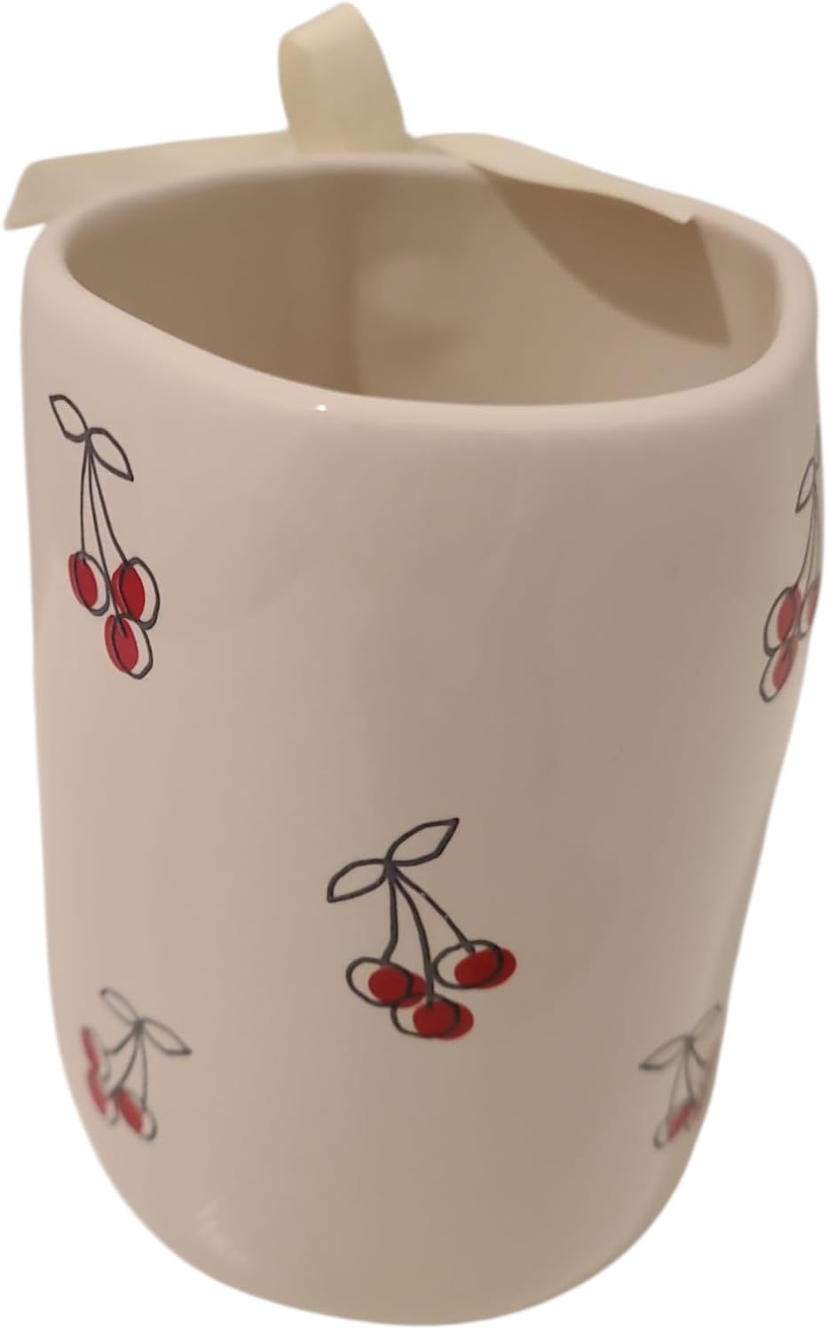 Rae Dunn Mon Cherry Ceramic coffee mug with cherry keychain.