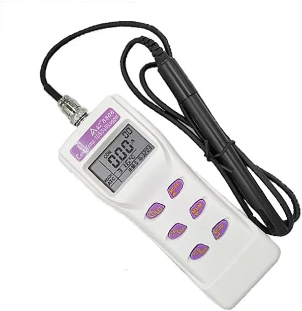Model:8306Conductivity Measuring Range:0~19.99, 0~199.9, 0~1999 us/cm0~19.99, 0~199.9 ms/cmConductivity Accuracy:±1% F.S ±1 digitConductivity Resolution:0.05% of Full ScaleTDS Measuring Range:0~19.99, 0~199.9, 0~1999 ppm0~19.99, 0~199.9 pptTDS Accuracy:±1% F.S ±1 digitTDS Resolution:0.05% of Full ScaleSalinity Measuring Range:0.0~70.0 ppt (KCl)Salinity Accuracy:±1% F.S ±1 digitSalinity Resolution:0.1Temperature Measuring Range:0~80.0℃Temperature Accuracy:±0.6℃(<50℃), other range ±1℃Temperature Resolution:0.1TDS Factor:0.4~1.00Cell Constant:~1.0Manual/Auto:IncludedMemory:99 PointsIrDA Port:IncludedReal Time/Recall:IncludedTemperature Coefficient:0~10.0%/℃Normalization Temperature:15.0~30.0℃ (adjustable)LCD Size:44(L) * 26(W) mmOperating Temperature:0~50℃Operating RH%:Humidity <80%Storage Temperature:0~60℃Storage RH%:Humidity <90%Sensor Life Time:>6 months (with good maintenance)Meter Size:175(L) * 70(W) * 33(H) mmWeight:~150gBattery:AAA *4 PCS(Not included due to air shipping)Standard Package:Meter, Conductivity Probe, Manual, Carry Case