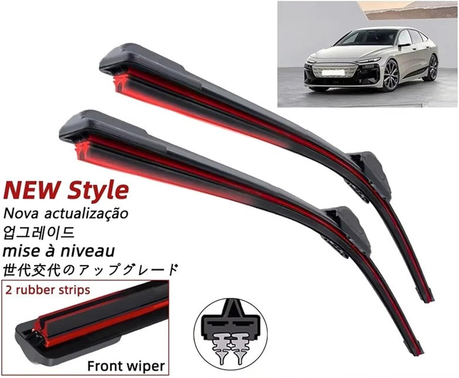 Rear Windshield Wiper Arm Wiper,Rain Brush Compatible Version, For TT MK3 8S 2014 2015 2016 2017 2018 2019 24" + 21" Double Rubber+Plastic Car Windshield WipersProduct Description:1. These wiper blades are made of Rubber+Plastic, providing a smooth and quiet wiping experience. They effectively remove rain and debris from the windshield, ensuring clear visibility in all weather conditions without leaving water streaks2. These wiper blades are aerodynamically designed to minimize wind resistance and noise, even at high speeds. They are durable, suitable for all seasons, and easy to inspect and replaceThese wiper blades feature a direct replacement design for quick installation without splicing or modificationSpecifications:Product Type: Car Wiper BladesMaterial: Rubber+PlasticInstallation Method: Direct ReplacementPackage List:1 X wiper bladesNotes:1. Due to manual measurement, there may be a 0.5-2 cm error in size2. Please confirm your car's wiper blade size and interface before purchasing. If you have any questions or problems with the product you receive, please feel free to contact us
