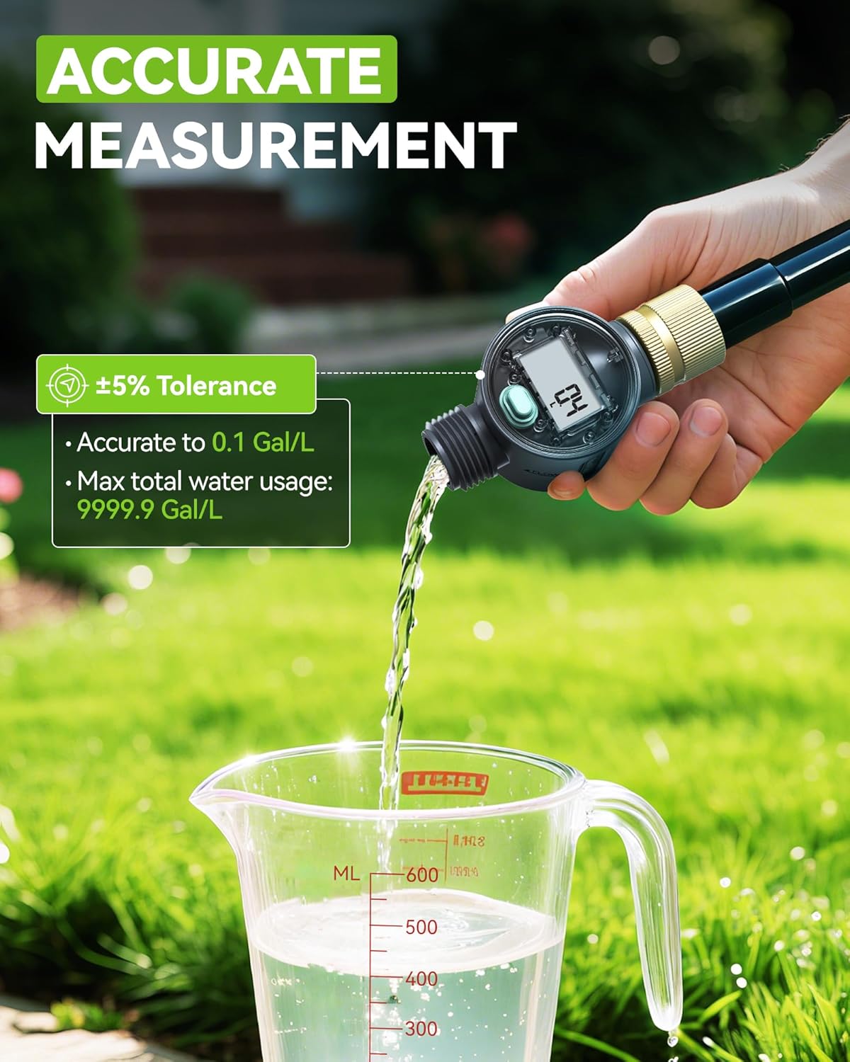 • 【Double Leak-proof】The water meter for garden hose features a double leak-proof design, and the screen and battery cover equipped with waterproof rubber rings to achieve all-round waterproofing