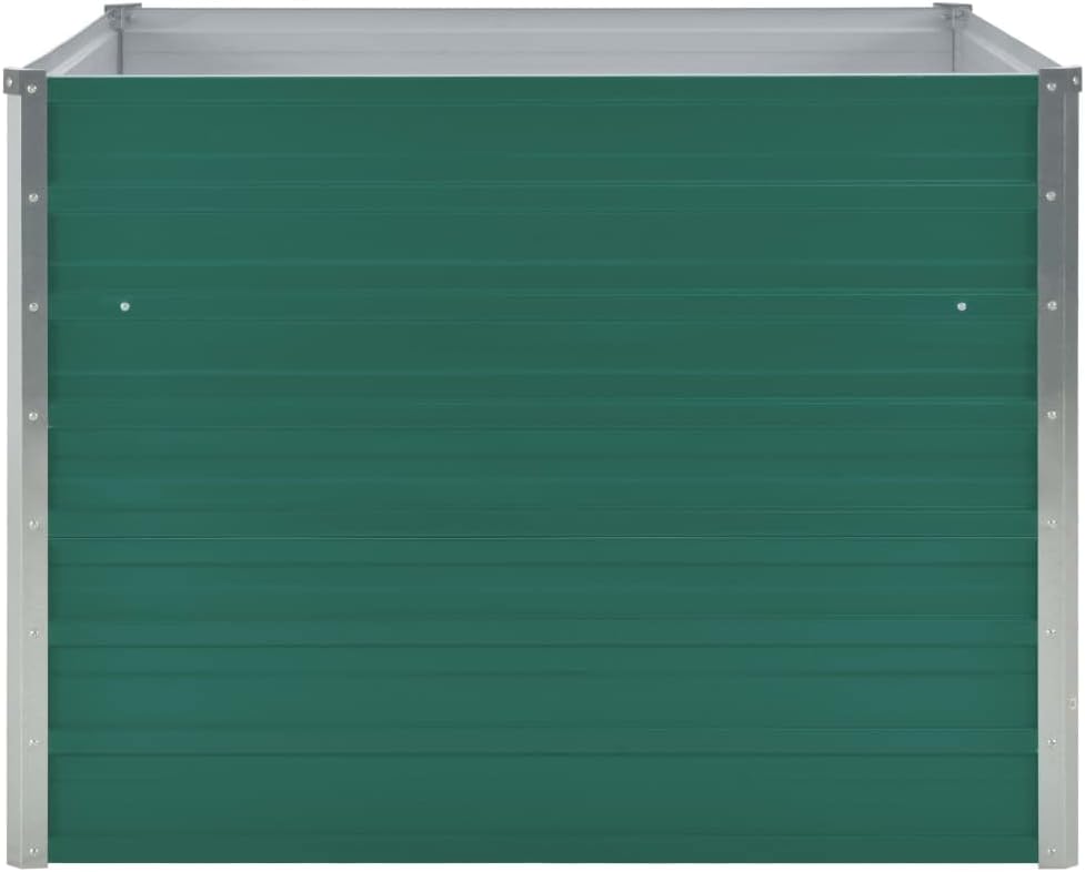 This raised garden bed is extremely durable and beautifully made. It is deep and wide enough to hold a large amount of soil and provide ample space for your plants, vegetables, herbs and flowers. Thanks to its simple square design, it will make a stylish addition to any balcony, deck or patio. It is made of galvanized steel and equipped with interior support brackets, which makes this planter very sturdy and durable. The rim of the planter has an edge fold design so no dangerous sharp edges are exposedAssembly is easy.Color: GreenMaterial: Galvanized steelDimensions: 39.4" x 39.4" x 30.3" (L x W x H)With a gray finishWith safety edge foldEasy assembly