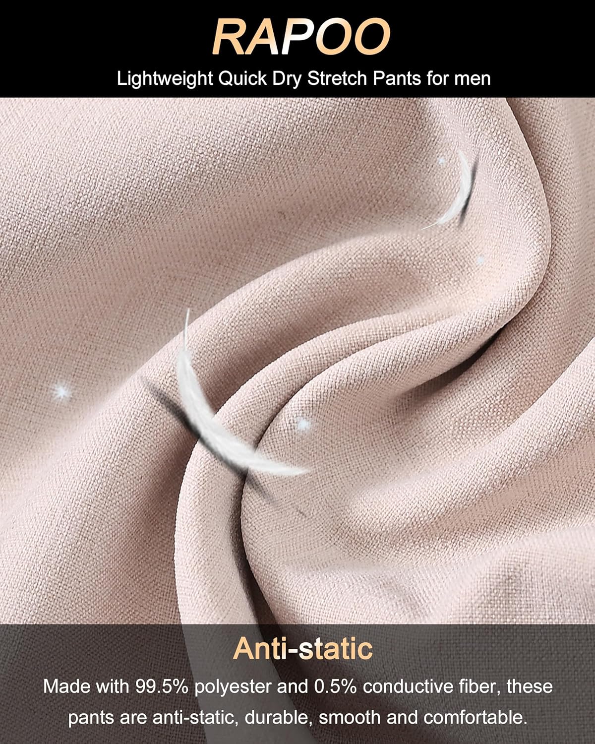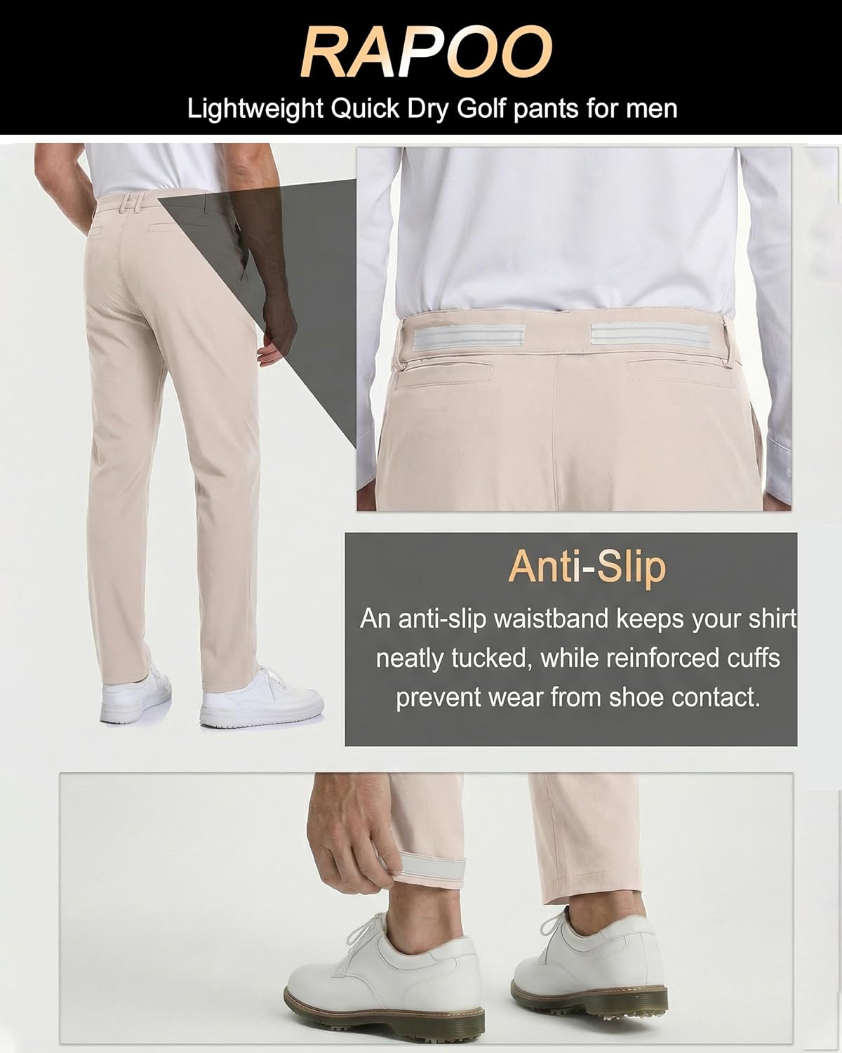 Rapoo Men's Stretch Golf Pants Elastic Waist Slim Fit Slack Soft Lightweight Quik-Dry Trousers Casual Dress Work Pants for Men