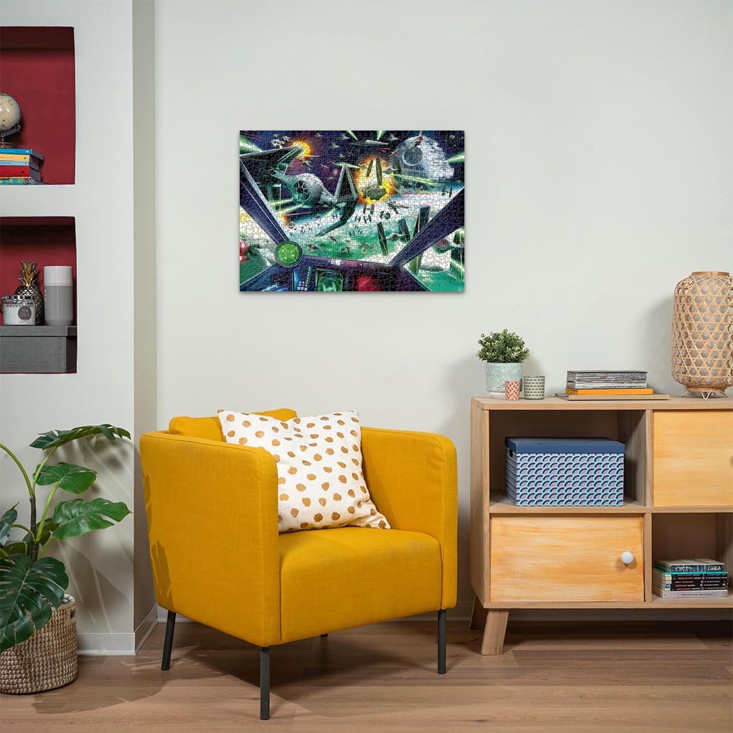 Battle the evil Empire in an all-out fight to save the galaxy in our “Star Wars: X-Wing Cockpit” puzzle!“It’s a trap!” cries Admiral Ackbar! Indeed, it’s the climactic Battle of Endor in 1983’s Star Wars: Episode VI Return of the Jedi, as the Rebel Alliance endeavors to destroy the Galactic Empire’s second Death Star! But the evil Emperor has other plans, with stormtroopers ready to thwart the brave rebels’ mission to destroy the shield generator on the forest moon. Wait, that Death Star is fully operational! Engaged with the Imperial Navy in close-range battle, can you help save the galaxy?A companion puzzle to #16920, “Star Wars: TIE Fighter Cockpit” releasing Fall 2022! This 1,000-piece jigsaw puzzle combines captivating imagery with clean-cut pieces and Ravensburger’s perfect interlocking fit for a most pleasurable puzzling experience! Our puzzles are crafted with an exclusive, extra-thick cardboard backing along with our superior, linen-structured paper, so the printed image is vibrant, crisp, and glare-free. Create memorable moments with Ravensburger premium puzzles!Fun for ages 14 and up! Measures approximately 70 x 50 cm (27 x 19.5 inches) when completed.