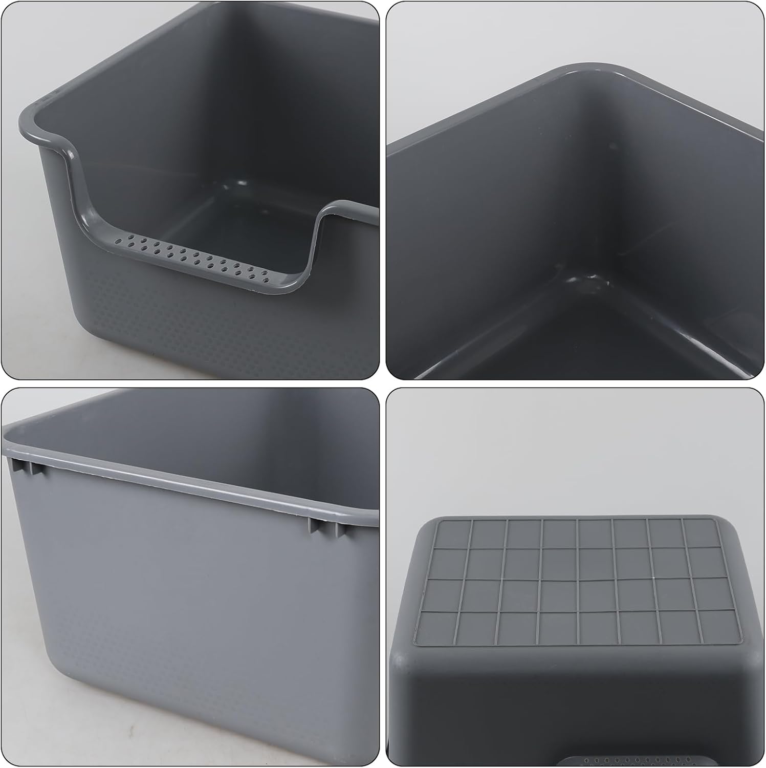 Open Top Cat Litter Tray with Scoop, 4-Pack, Gray